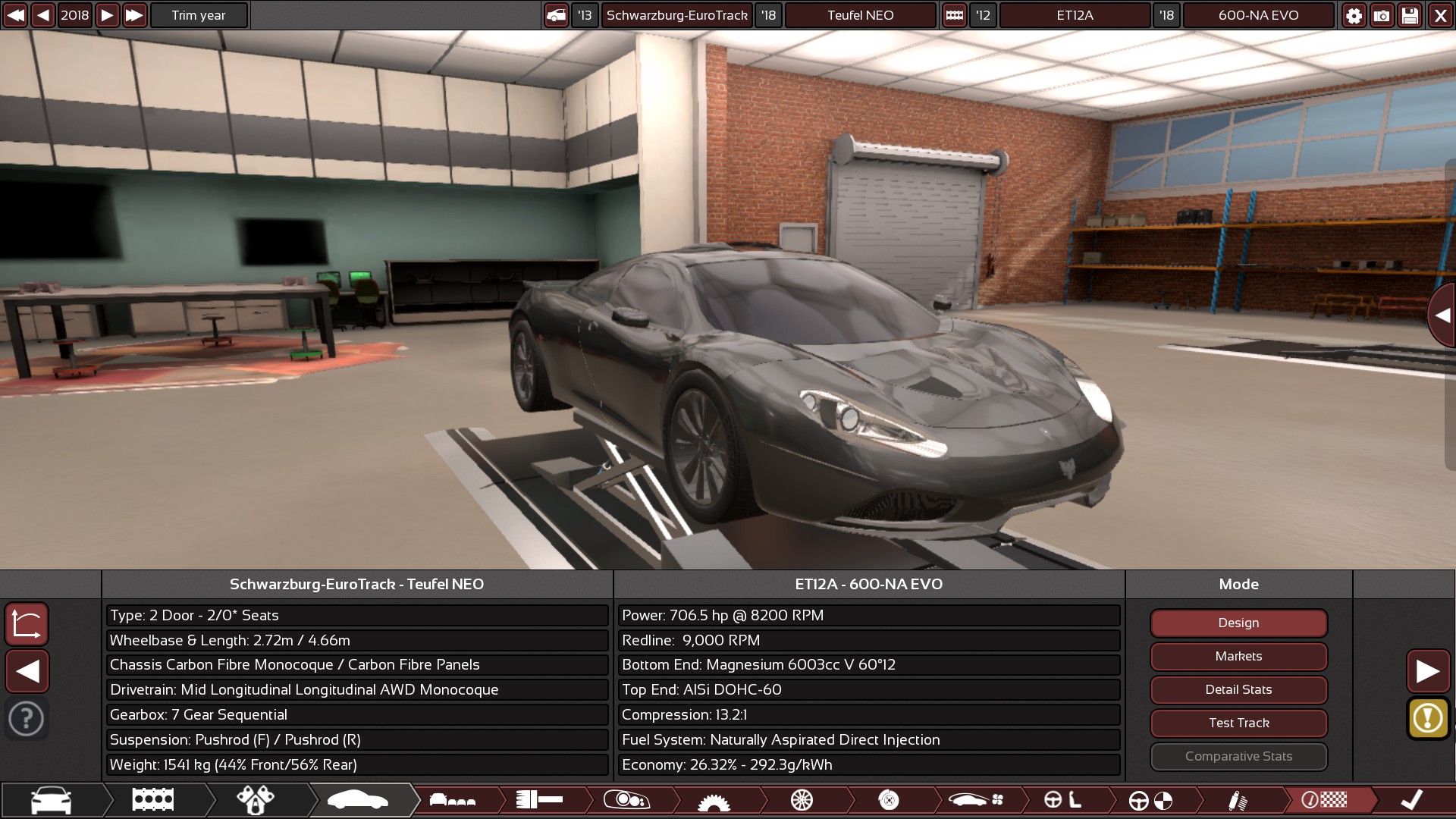 EuroTrack had a great engine and decided they needed a mid-engine supercar to put it in. This is when EuroTrack decided to use the Schwarzburg Teufel. EuroTrack was amazed by the handling and performance of the Schwarzburg Teufel and immediately went to make a deal with Schwarzburg about using Schwarzburg a chassis for their ET12A-EVO (700bhp) engine. Schwarzburg were glad to have the deal so the Schwarzburg-EuroTrack Teufel ET12 was born. The rear end was redesigned to produce more downforce and the front had some minor changes and an S duct was included.