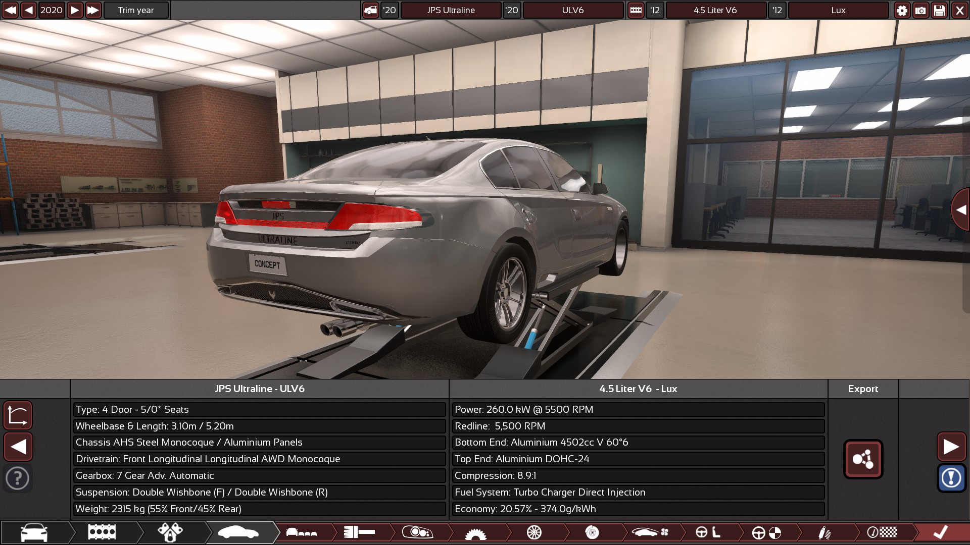 AWD, 7 speed automatic, 4.5 litre V6 twin turbo.