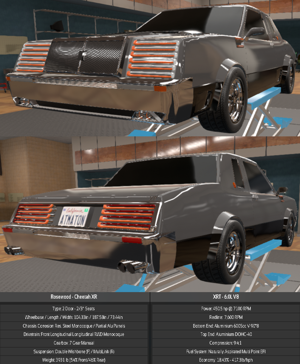 Rosewood, one of Bruckell's many divisions, decided to designed their own muscle car loosely based off the 2060s Moonhawk. The end result was the Cheetah XR, a 450hp bullet of a car that nearly weighs 4000 pounds. Even with all that weight, the Cheetah XR handles surprisingly well, just don't get cocky or you might end up understeering into a tree.
