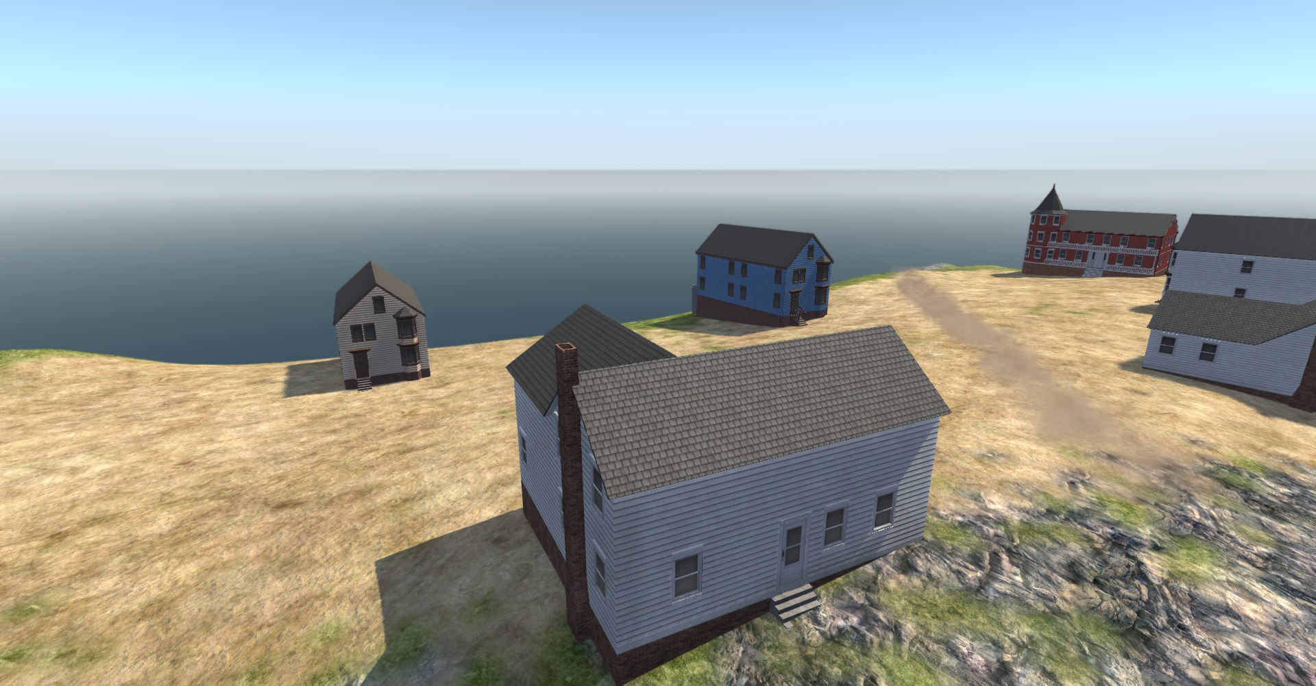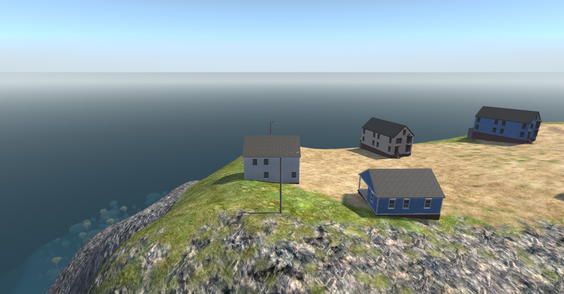 This map features a flooded street with trees and a big mountain/cliff!!