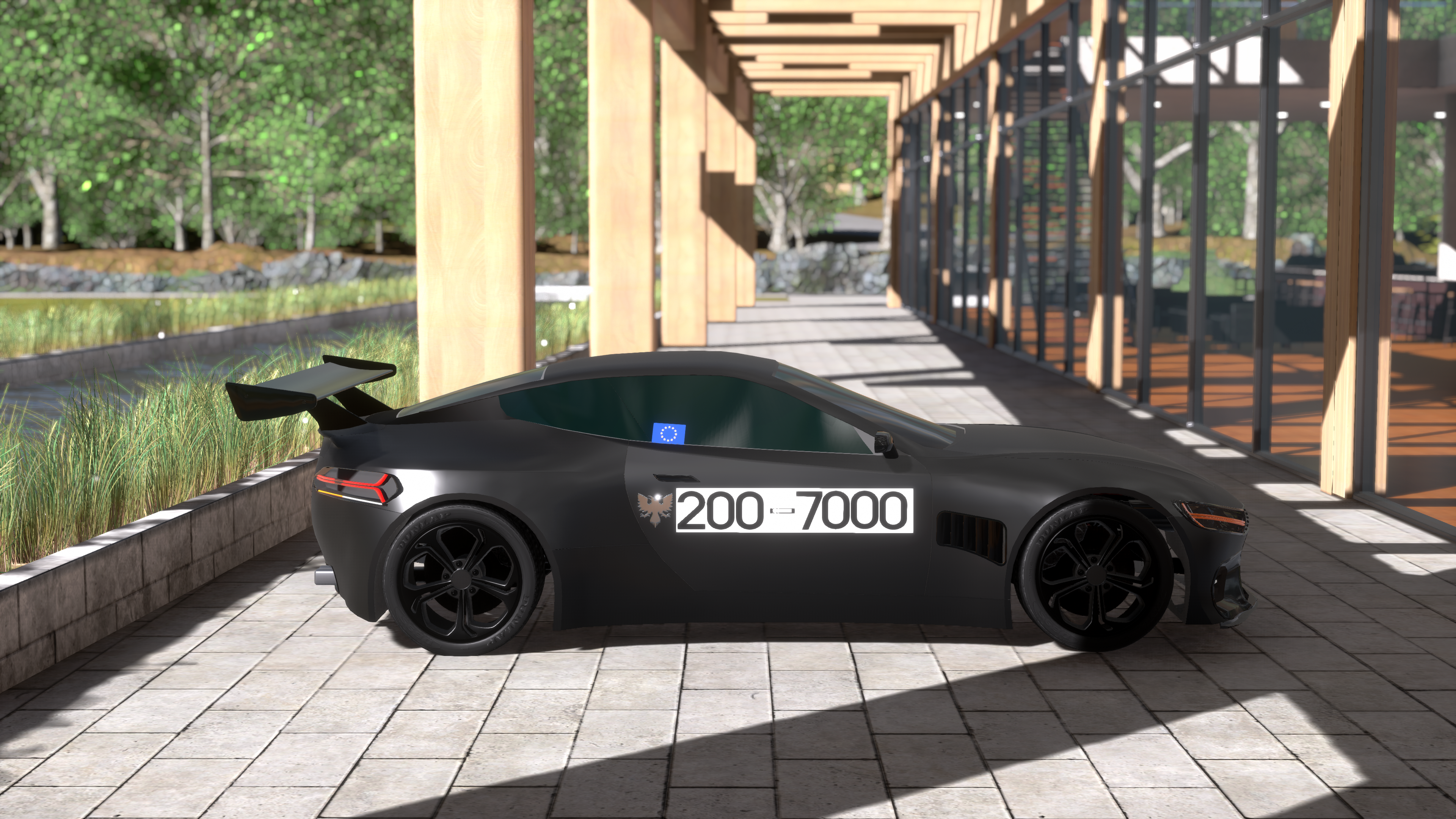 The E200-7000 Supercruiser is a new class of car, the Supercruiser. Despite the 402km/h top speed the Supercruiser is not made to have an ultra-high top speed, nor must it be the fastest car on the track. It is designed to be comfortable and easy to drive at over 300km/h. Initially RWD, the supercruiser was changed to AWD to aid stability and ease of driving after the RWD layout made the car unstable. The car was also fitted with a large rear wing to aid high-speed stability. The car's early 6 litre V12 was increased in size to 7 litres, it produces 1042ps/767kW and 873Nm. This mounted to the 1328kg gives the car a total weight of 1598kg.