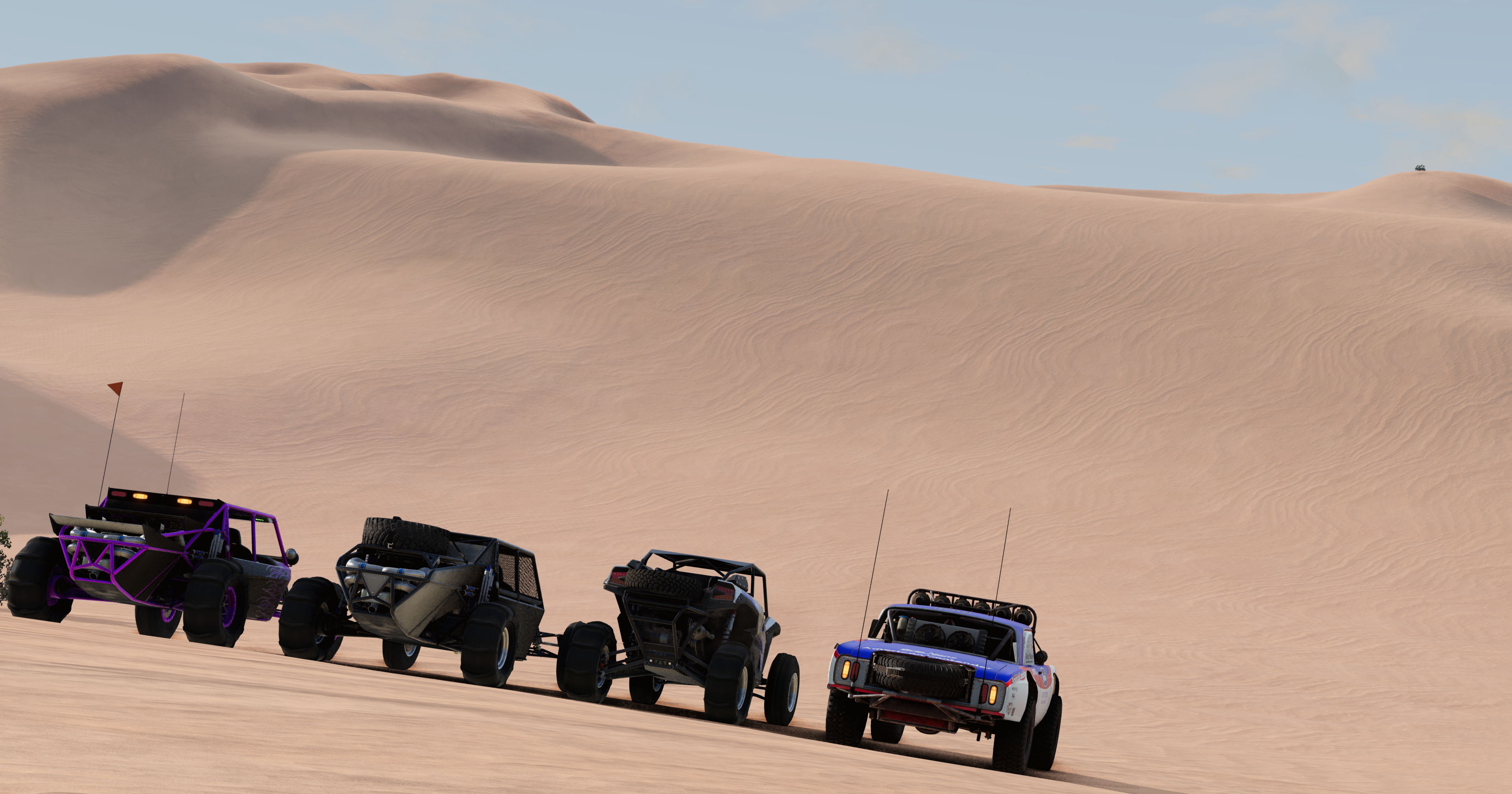 The map is huge, 8k to be exact so there may be some performance issues even though I spent most of the time on this map optimizing it. There are plenty of little easter eggs/points of interest to find to make driving around somewhat worth it and a few small references to Glamis Sand Dunes of California.