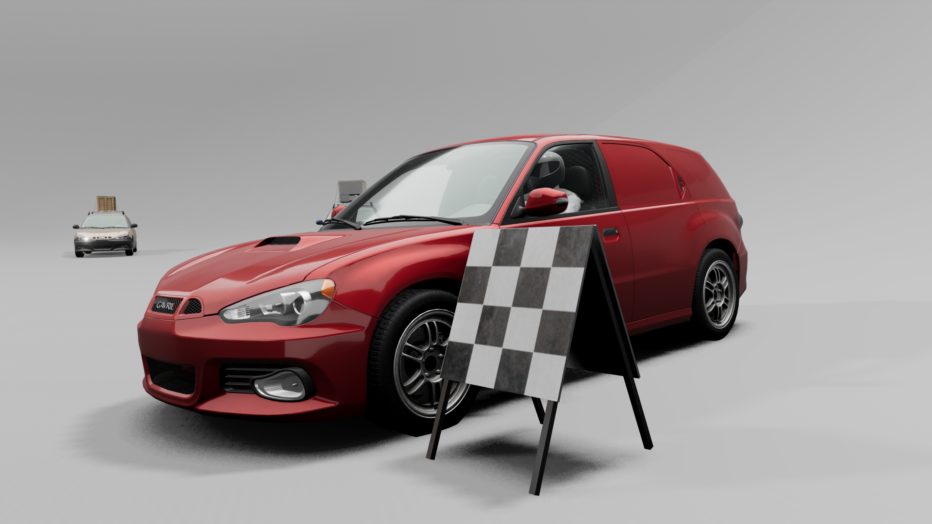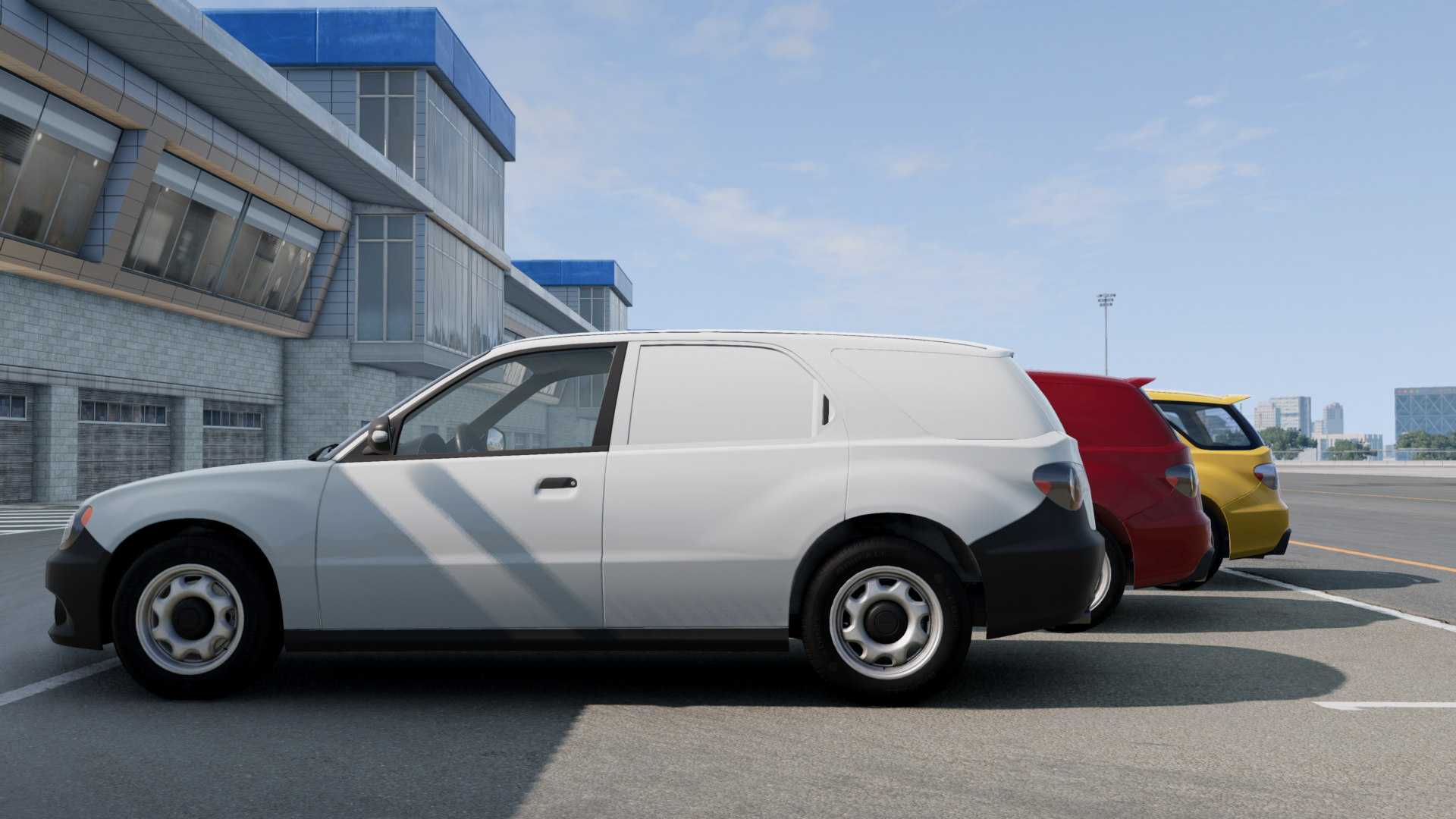The idea was simple: taking as a base a barebones Sunburst Wagon Base, Hirochi made a commercial vehicle that didn't break the bank. Stripped interior in dark grey and black, unpainted bumpers, side mirrors and front door handles, as well as simplified rear trunk lights helped in keeping production costs low, which meant the sale price was quite low. Suspension was also reinforced, to support heavier loads.
