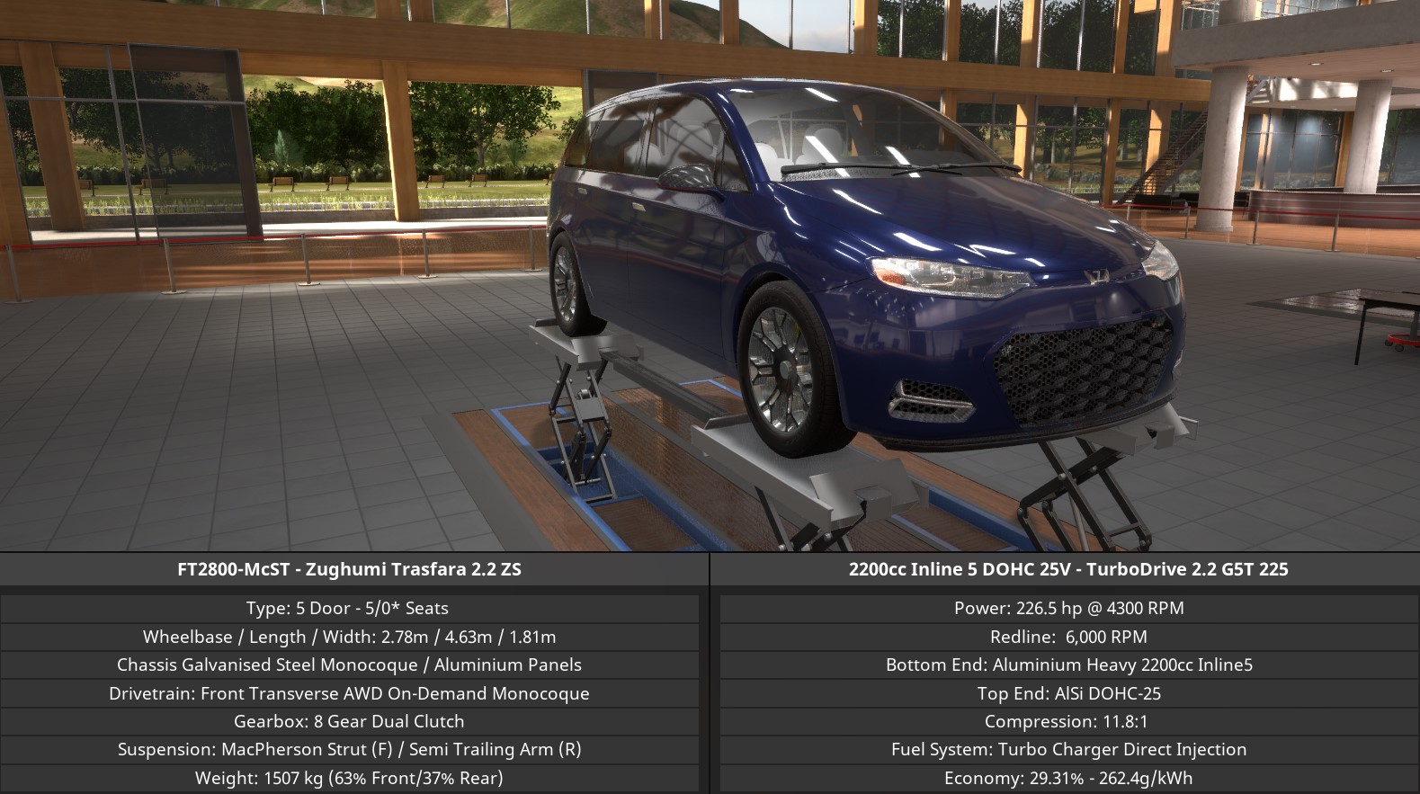 Debuting in 2022, the fourth-generation Zughumi Trasfara redefines the modern MPV with a bold design, a versatile chassis, and a strategic focus on sustainable yet practical powertrains. Built on a rigid galvanized steel monocoque with aluminium panels, it offers a spacious interior within a footprint of 4.63 meters in length. The model range is strategically divided into three main trims, catering to different needs, from family travel to all-weather capability and performance.