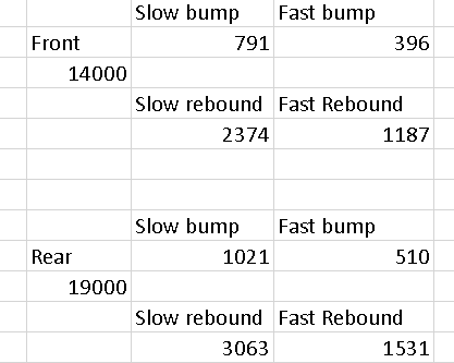 Does anyone have dimensions of coil springs of this Skoda? I came up with these values for 130GL when using 1.3Hz front and rear, but I'm not sure if that is still too sporty. I did try to put those to rally coilovers, but I could not go enough low and those are for 0.15m/s damping knee. As @Atomix has put on first post, I can't tamper files to adjust rally coil overs, but even when adjusted to what I could, it was better, imo. 14000 and 19000 are spring rates.