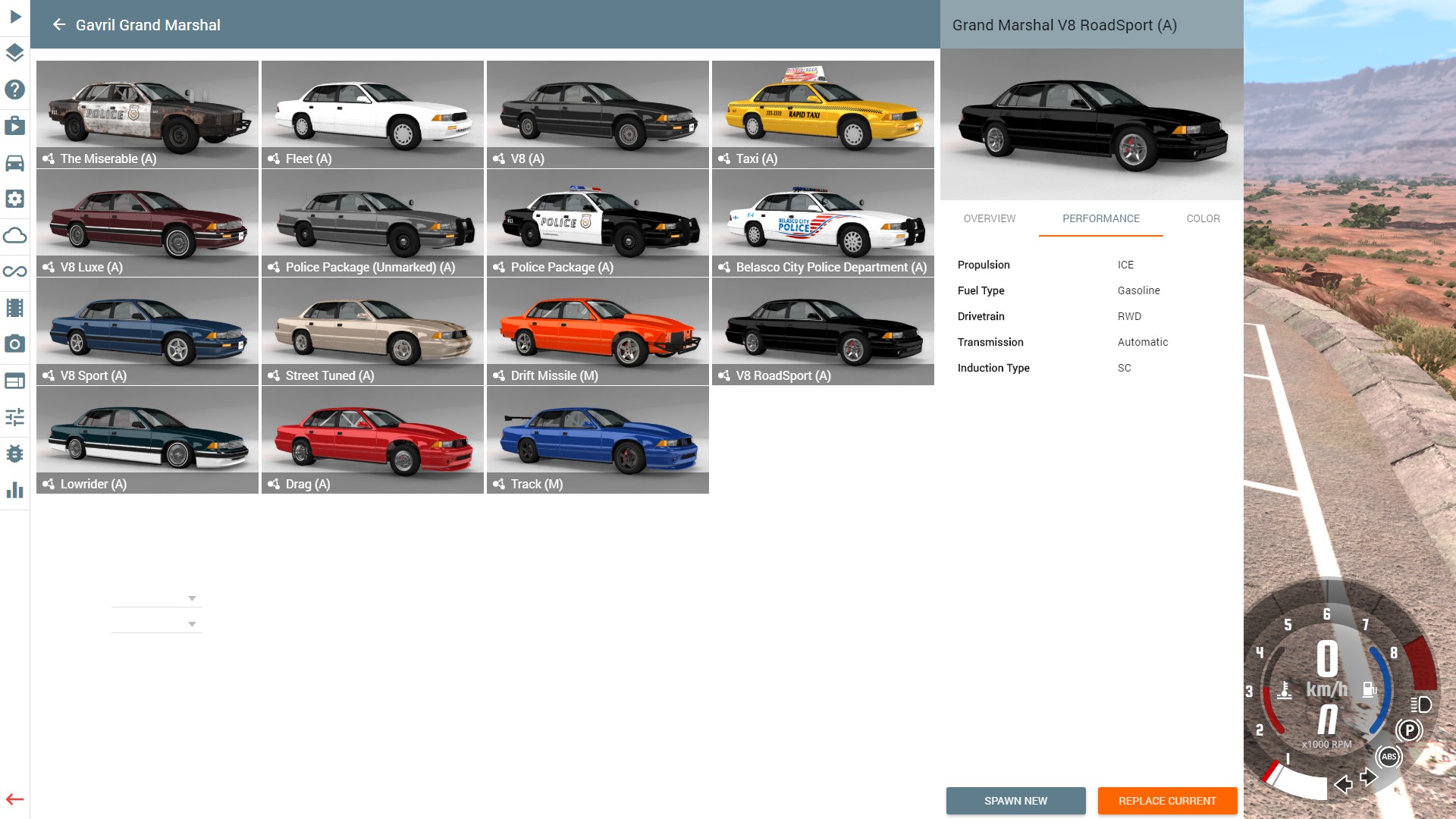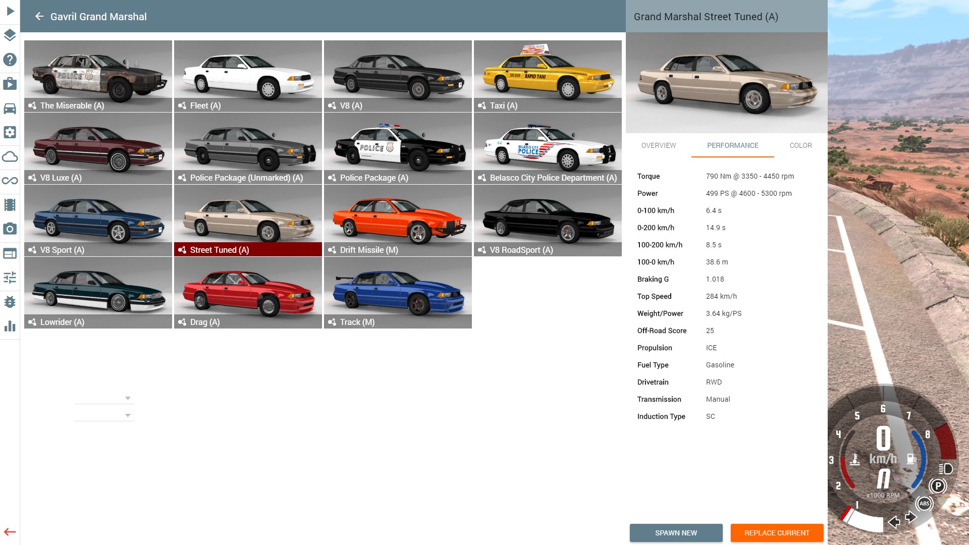 Selecting the "show custom configs in vehicle selector" option allows the rusty 4WD D-Series and Guinea pig Covet to show in the vehicle selector.