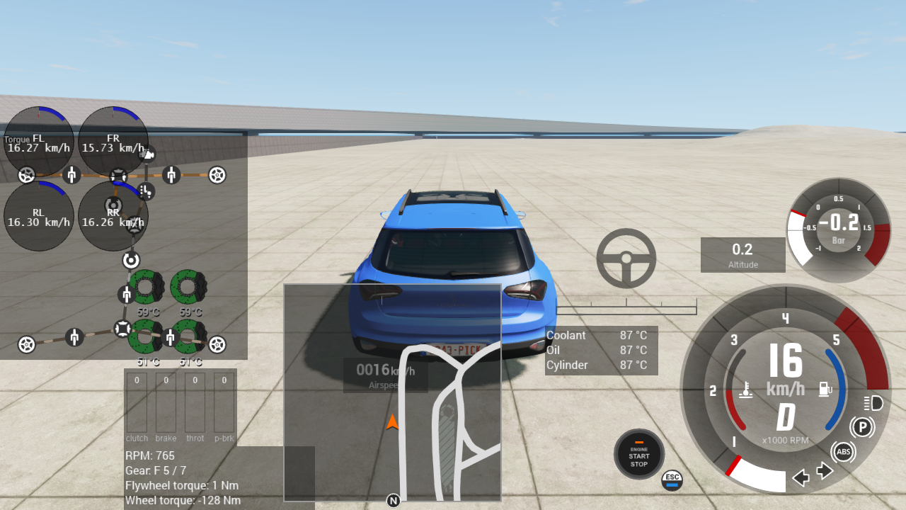 Note the engine torque and the gear on the lower left