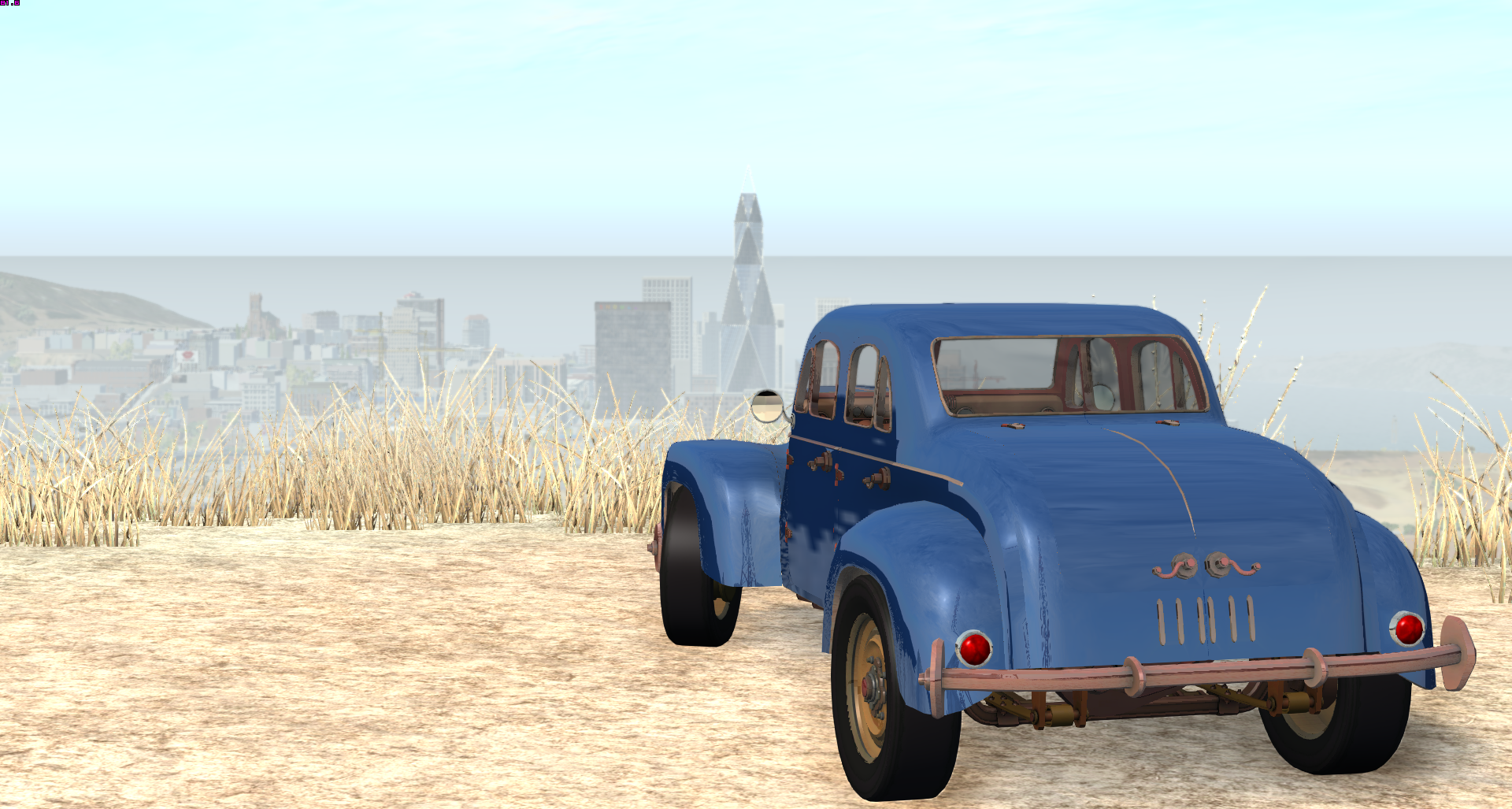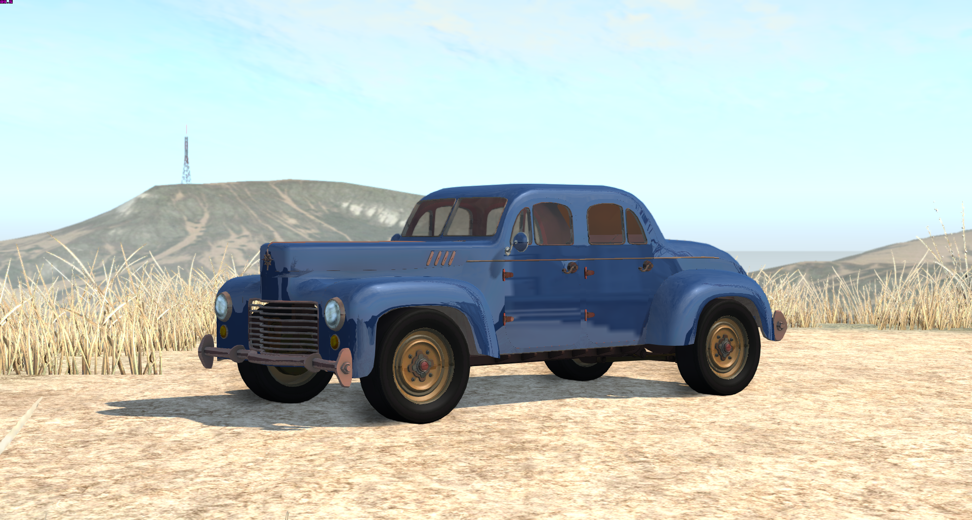 Currently, I would say the vehicle is about 60-70% in-game. I still need to do some minor texture corrections to control reflections on certain parts and to correct the colors on the lights, get the rest of the interior in game, get the glass in game, get the radiator in game, get the fuel tank in game, and some other small things.
