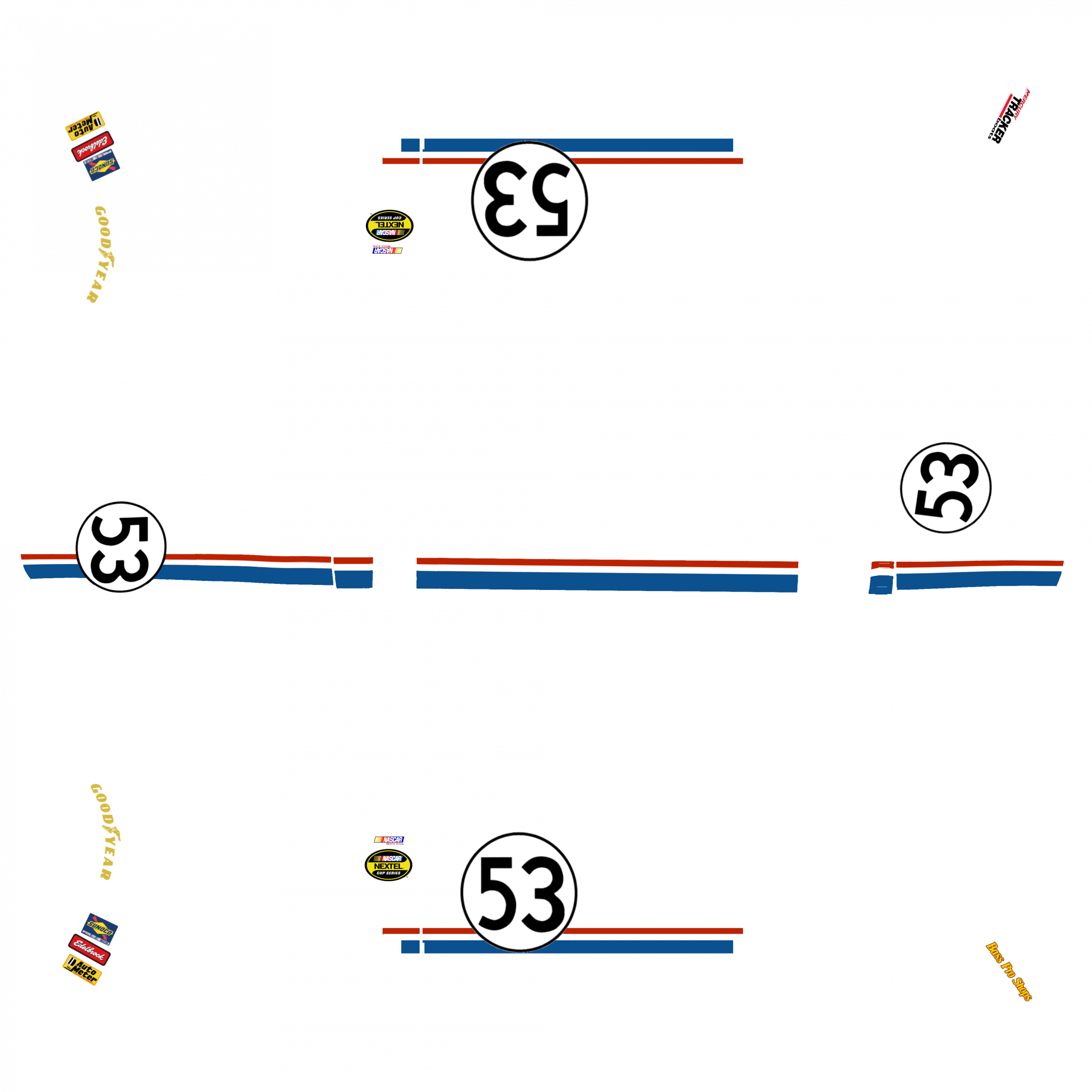 Hey guys, im struggling to figure out how to add actually add the UV map to my car/game, so im going to upload it here for those of you who are smarter than me to use! I present the Nascar Herbie skin. Idk how well it looks in game or anything, so fingers crossed I got it all lined up right on the first try!