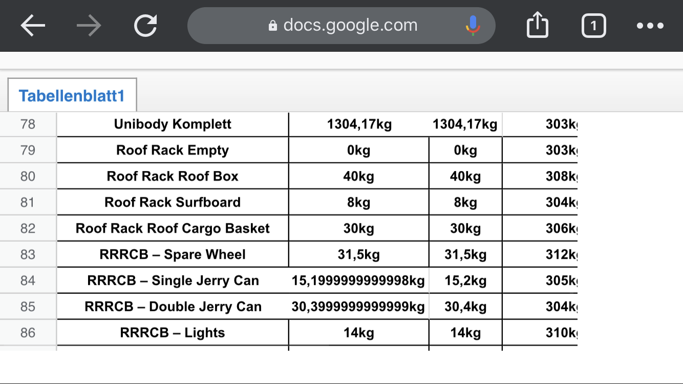 That was indeed my spreadsheet. You are both correct about the meaning of" RRRCB" and "Komplett/complete unibody mass". While being a native german speaker I usually end up doing such spreadsheets bilingual because I am lazy and english can be significantly shorter sometimes....