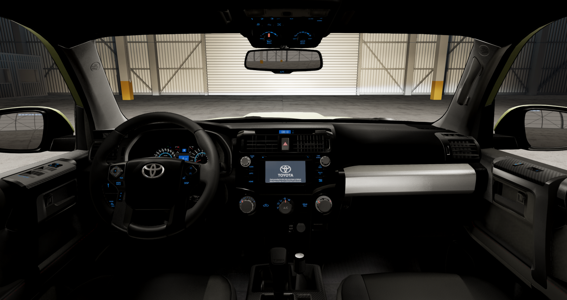 New day, new update! Modified and fixed issues with plastic textures and some incorrectly lit switches in the interior Added a toggleable box for the hazards button Added 17x9 TRD Wheels (thanks to @Braskus ) Modified the 200BX I4 engine specs into a SR20DE engine (thanks to @Braskus ) Fixed steering column and steering wheels positioning (thanks to @STEVIE_G4M1NG_YT ) And about the animated shifter, I already warned the R position is bugged and have no idea how to code it into place, I have only been able to adjust P and D.