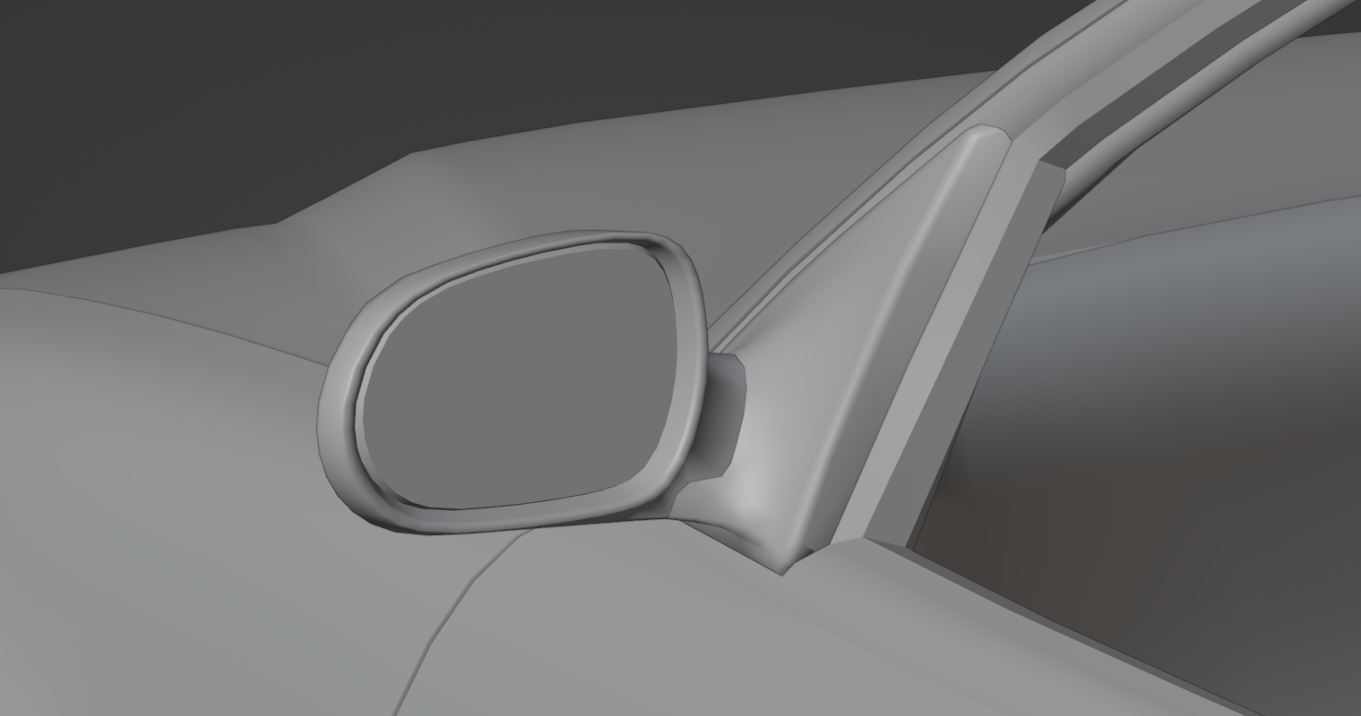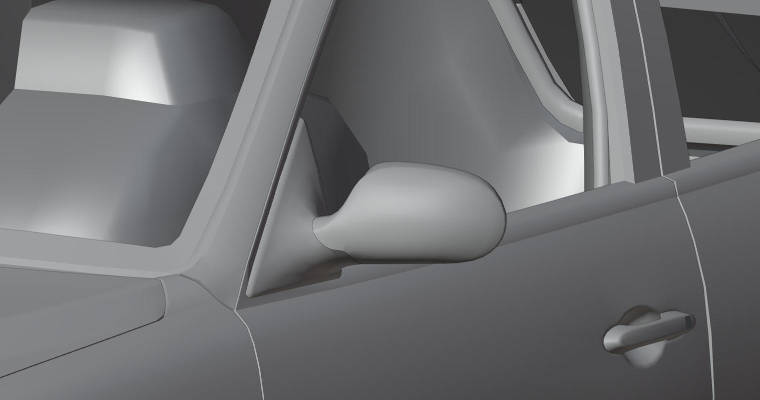 New mirror I forget what it's based on. I modelled it forever ago. I just now finished forming it to the door (my first attempt looked like shit) Whether it will make it in on release depends on my motivation to fiddle around with the mirror JBeam