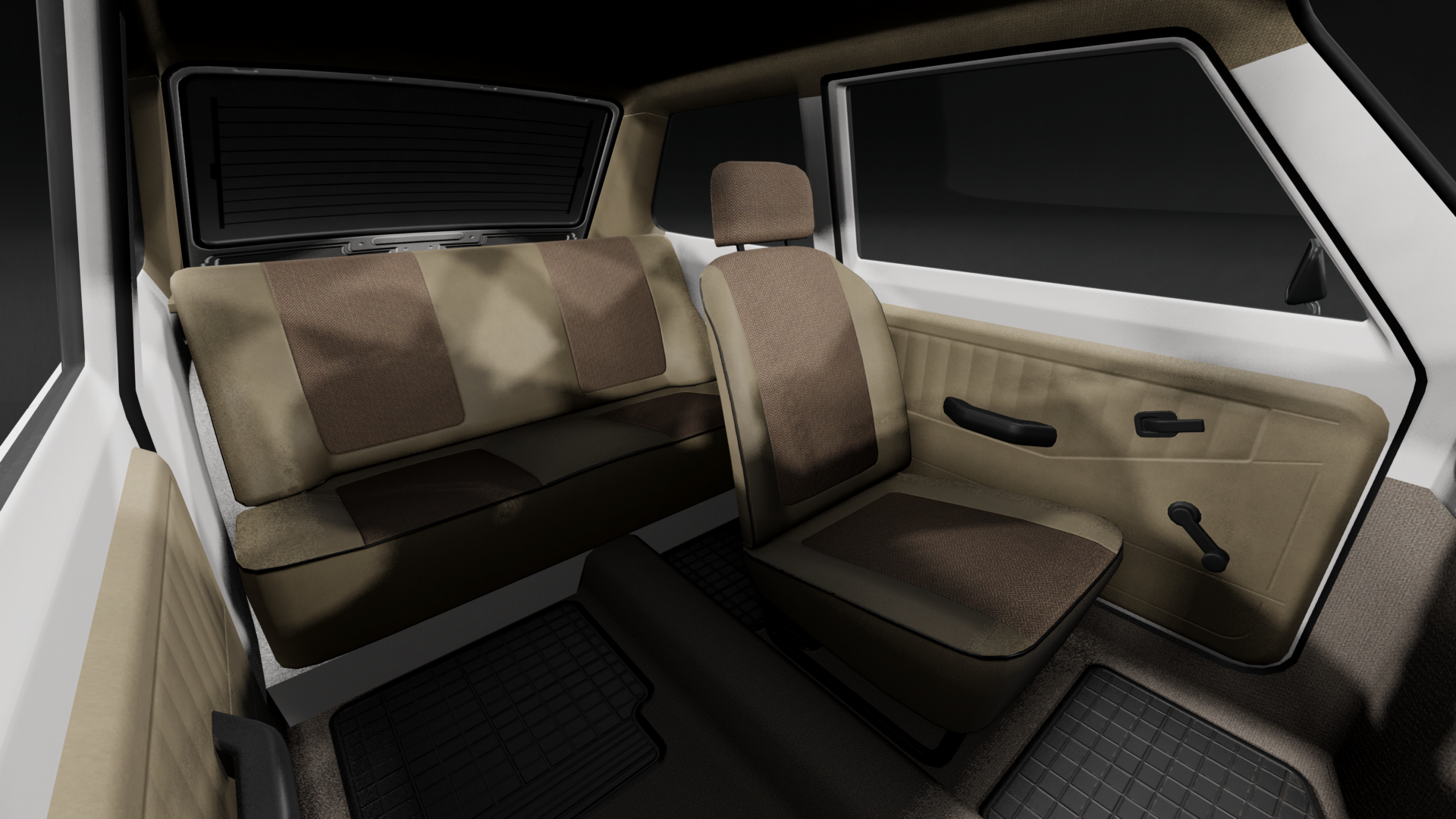 Hey again! The good news is: stage one of the interior is done - the seats, door panels, carpets and such are fully completed and are working in-game. Bad news: turns out that the high-poly models I made are more or less unusable due to issues I've had with baking the textures, and I've had to texture the low-poly's the "normal" way. In other words, a majority of the time spent working on those is wasted :/ Oh well, at least I have really high-detail models to reference when making the rest of the interior... Anyway, here are the pics in case you wanted to compare: