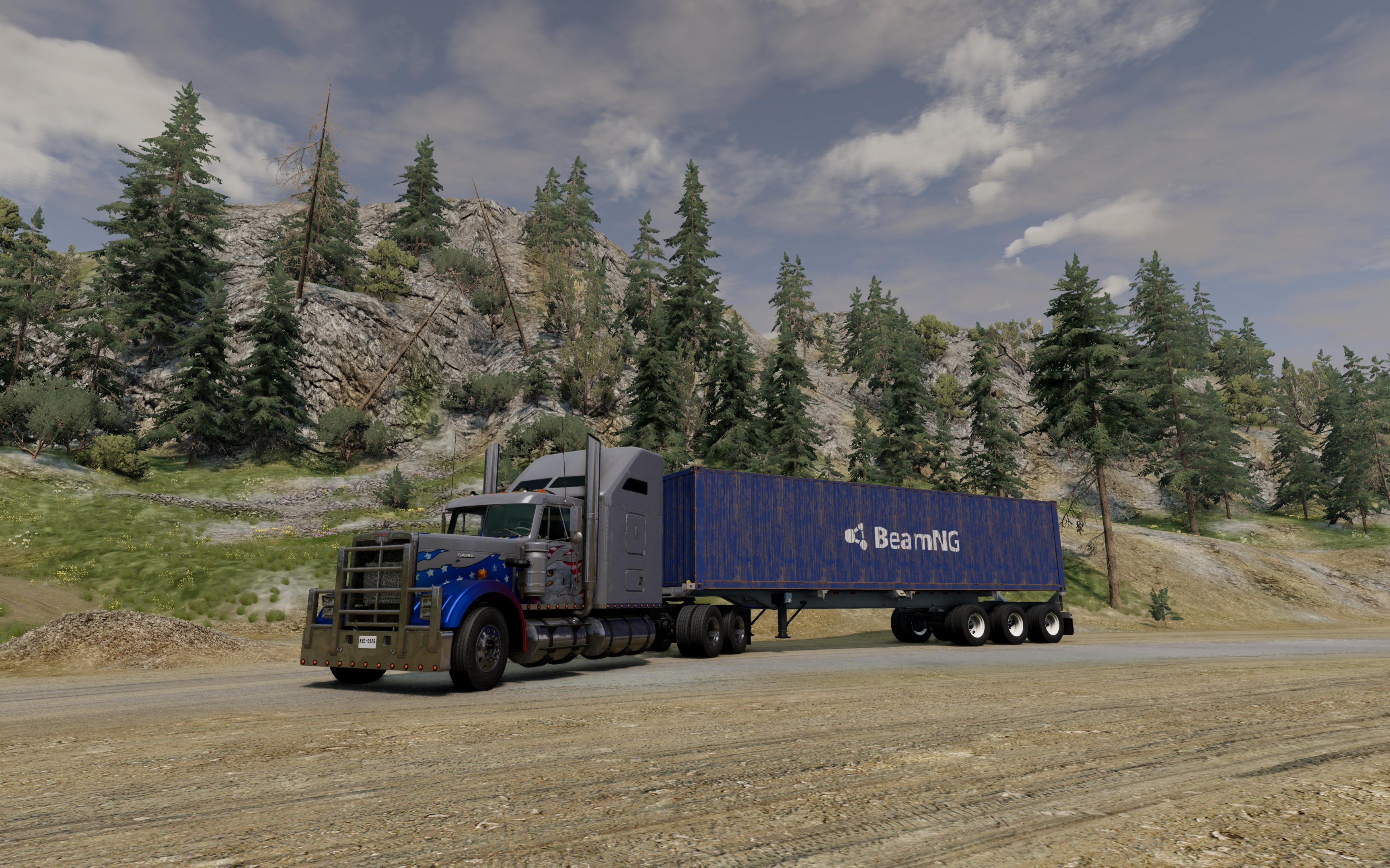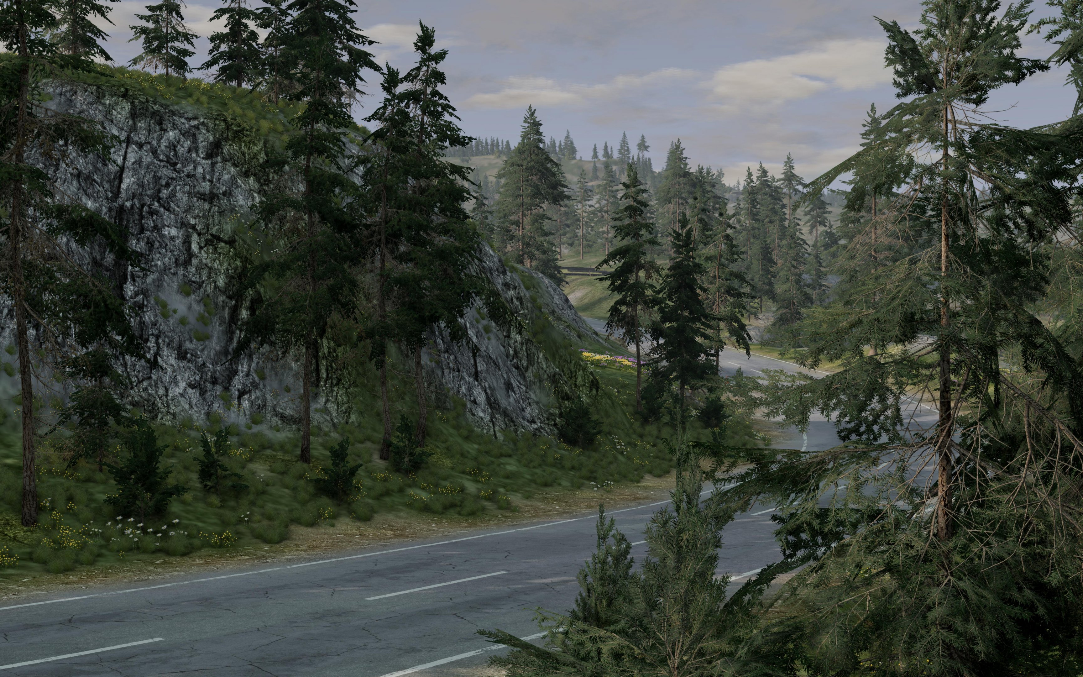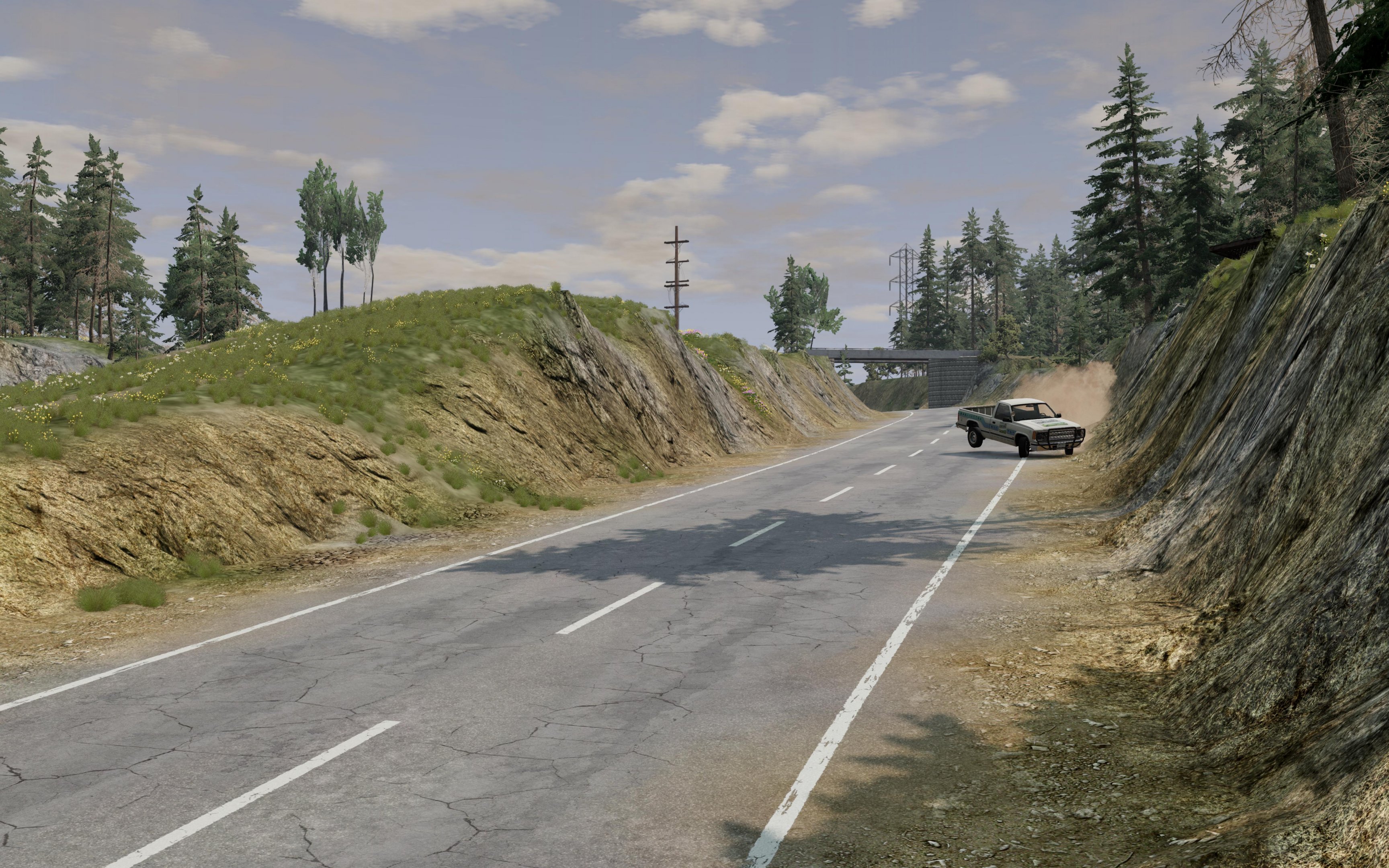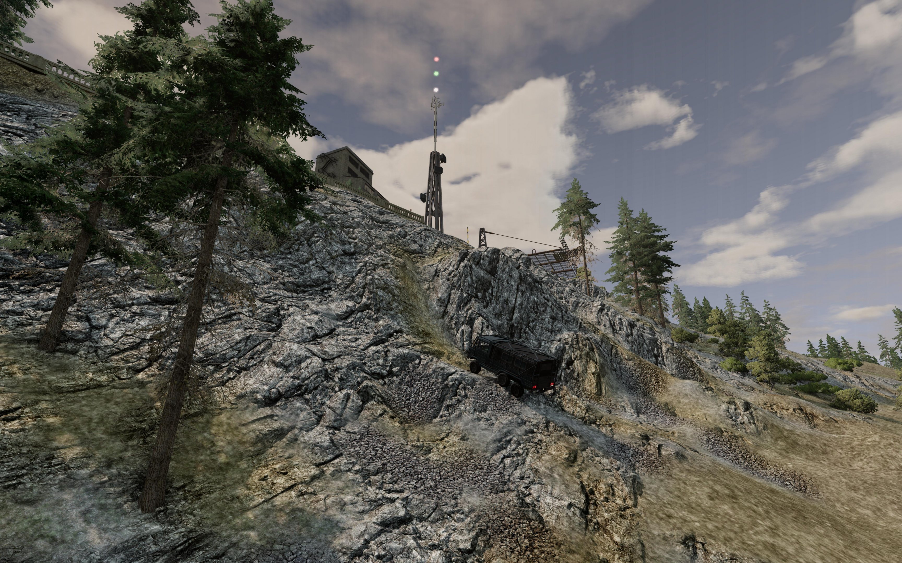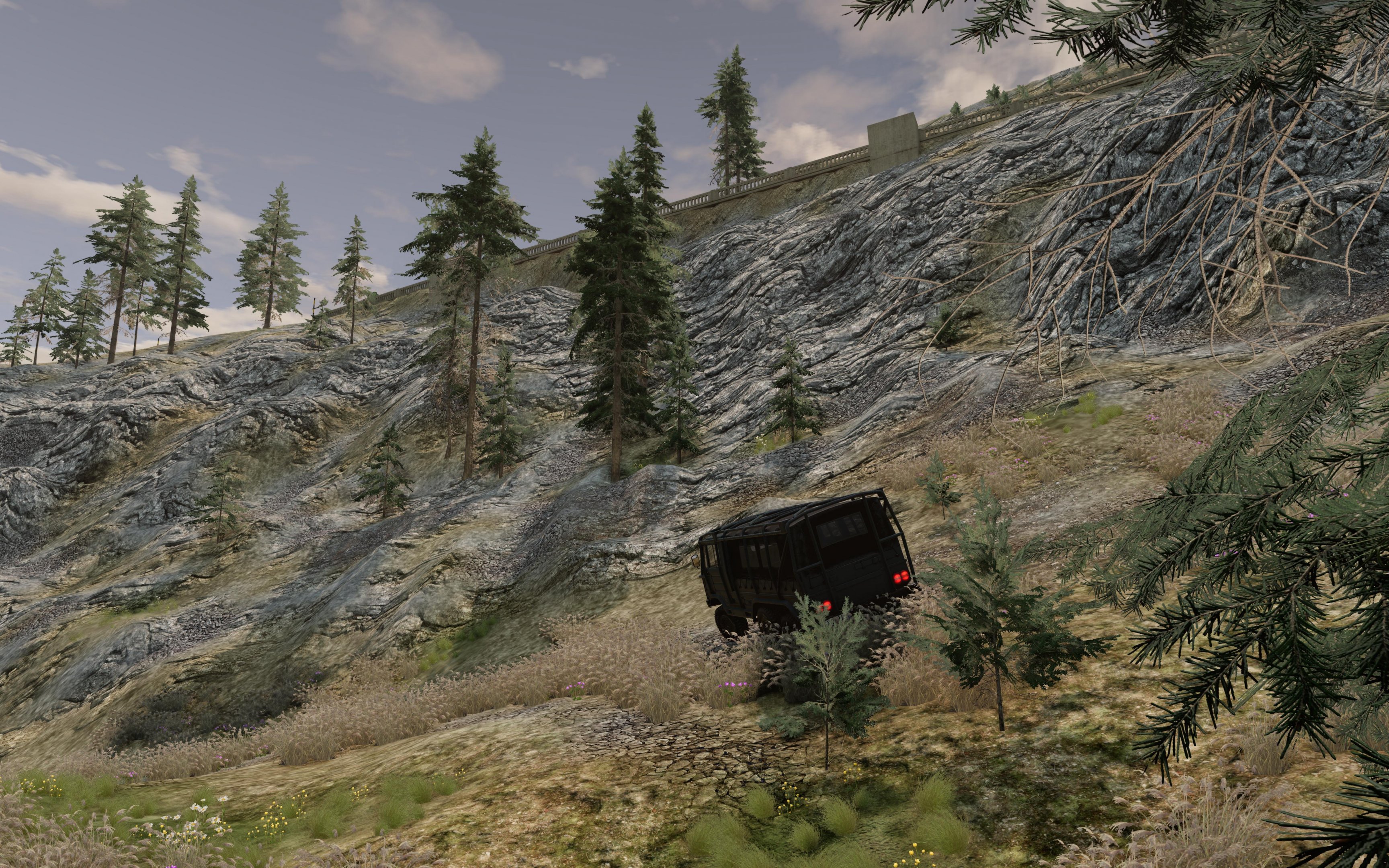 D flat out on gravel ..:: I made a rough video that shows further parts of the gravel/rally roads. The fast journey takes you from "Curchdown" to "Pi Water" garage through parts of the map that are finished and those that are still under construction (and will be at release). I was able to close and connect some big loops, though, so that there are plenty of kilometers ready to be swallowed in dust. The vehicle used was the D-Series, with the four-wheel drive deactivated, race 6M + sportintake. The way you slide through the curves at full speed reminds me of skiing. I don't need to say how much fun it is . And promptly I got caught speeding in Pi Water. Should have known! %@!#*!!! Aaaand ... I also have some more nice random pictures for you: