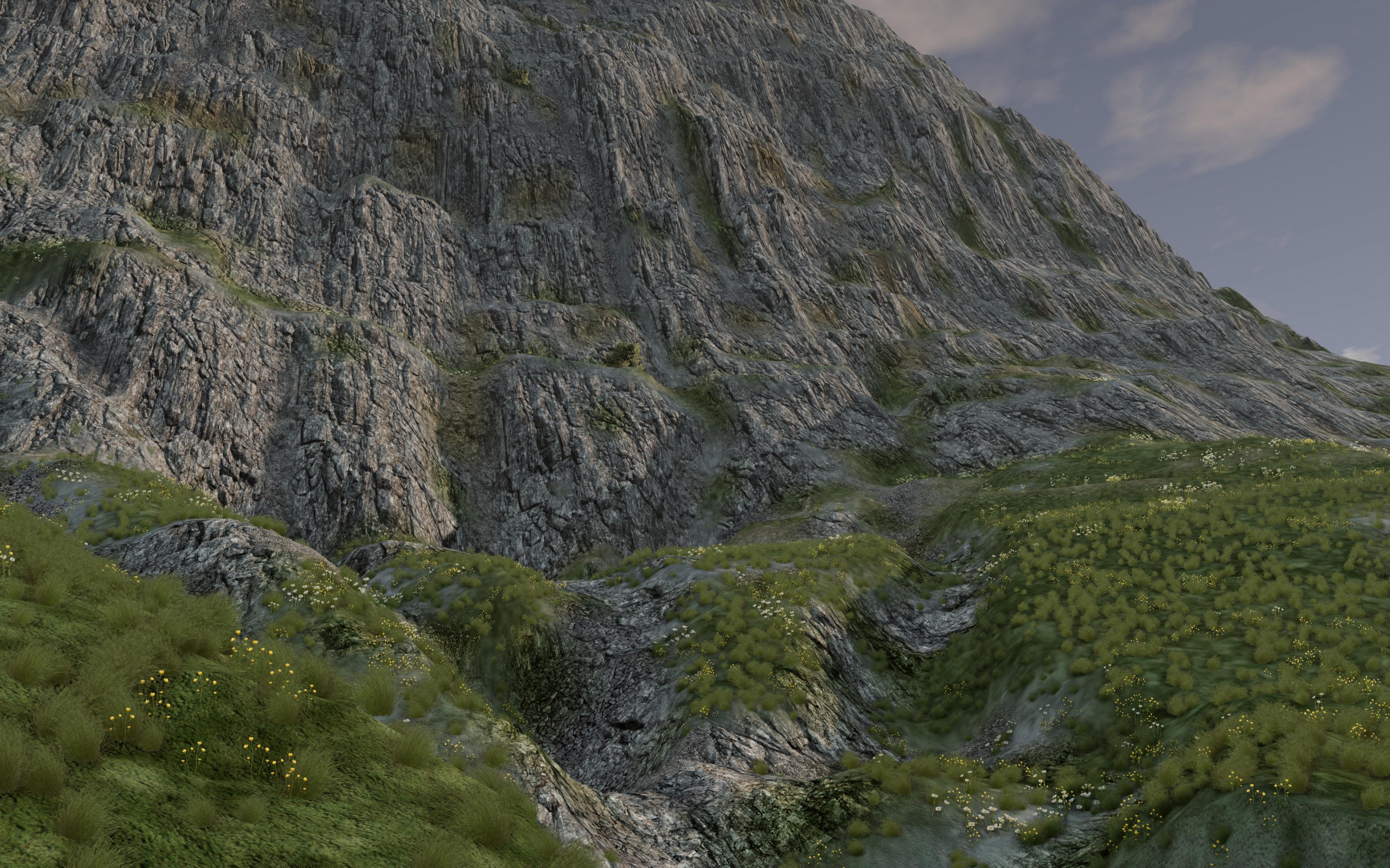 Chisel grinding Since the game update 0.34+ I encountered some changes in how (my non PBR) ground materials are rendered. There was an ugly color bleeding from one grid to the next. So I decided to overhaul many ground materials to reduce the effect by having higher resolutions and a finer tileing. In some regions I also have changed situations where light materials border on dark and vv. Kinda good, that I havent released the map bevor that but you never know in advance . The aftermath is a overall enhancement of visual experience in detail and distant coloring. It also gives me more freedom in sculpting because I have to deform less hard to create a good feeling of roughness . --- Post updated ---