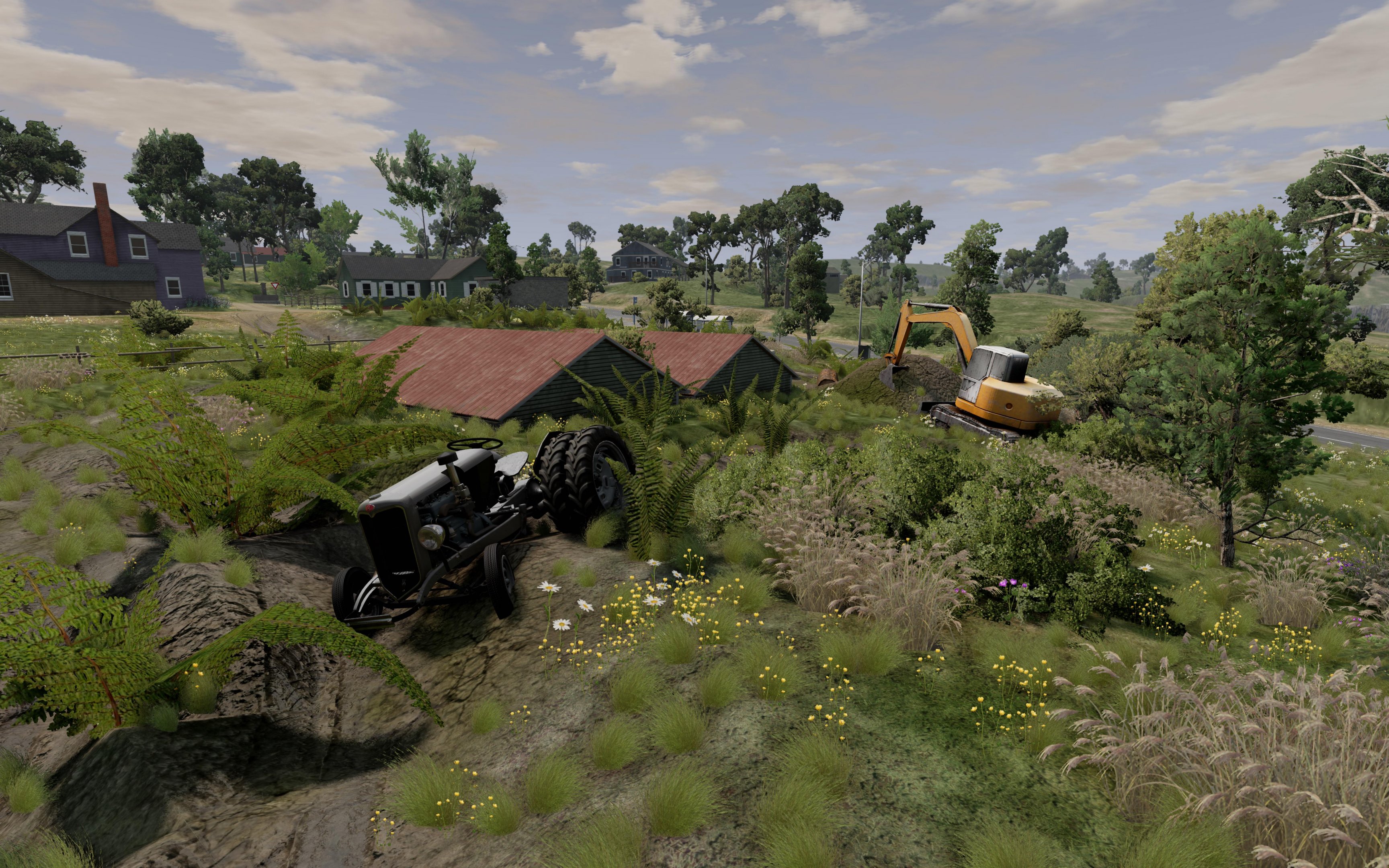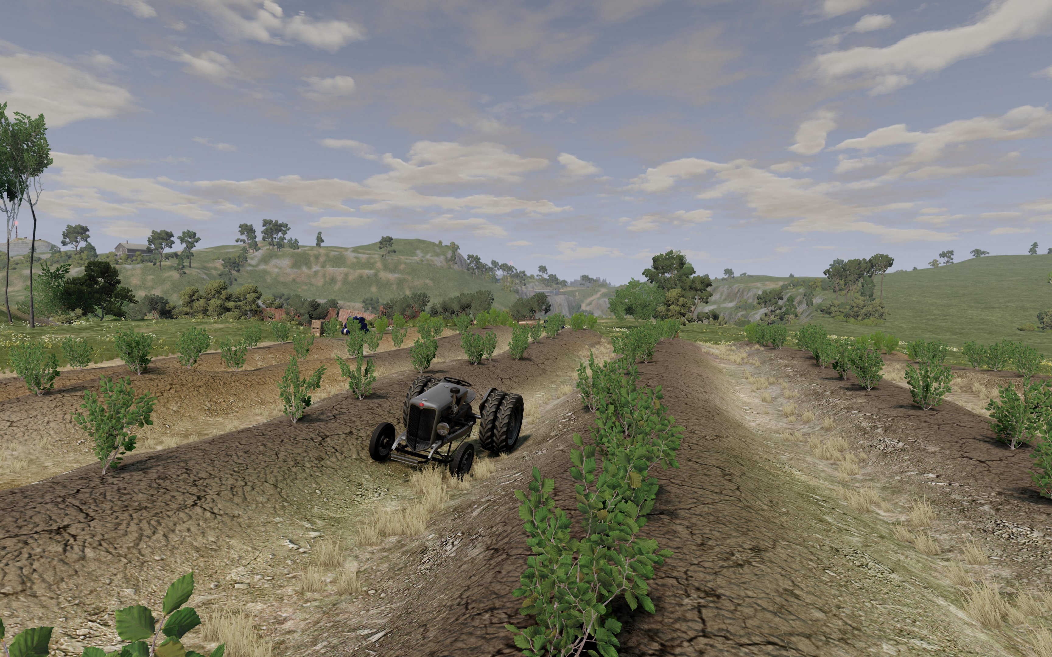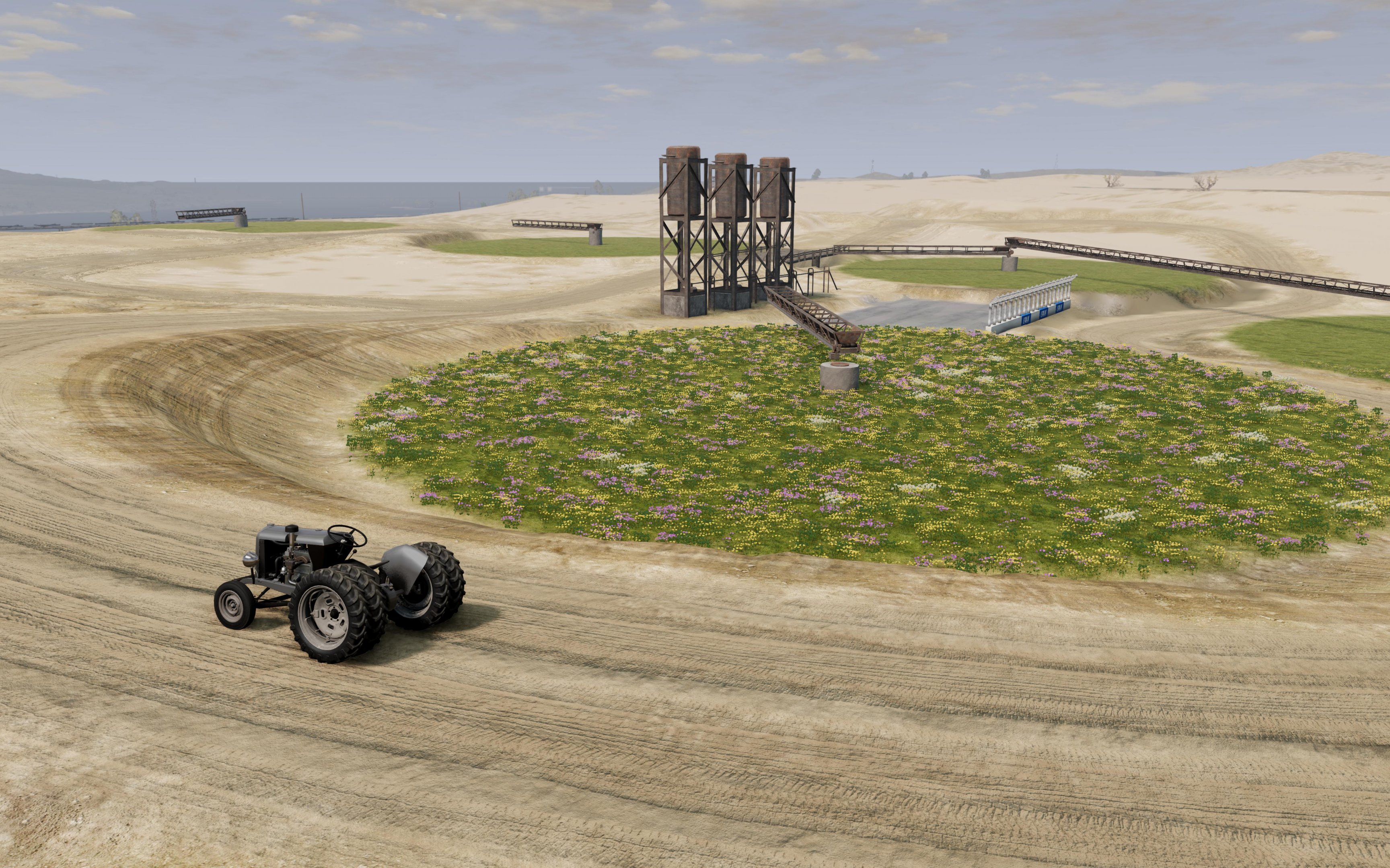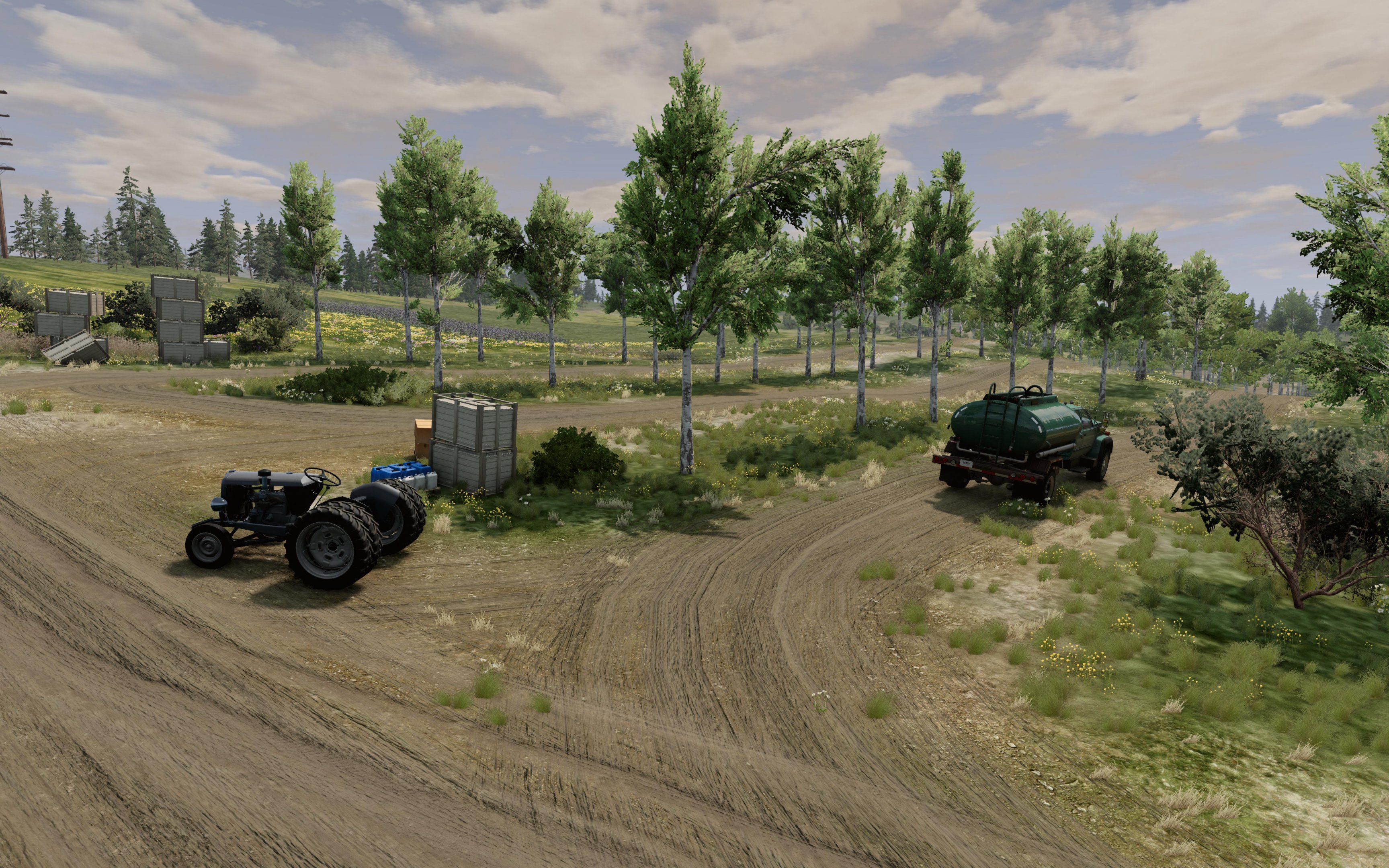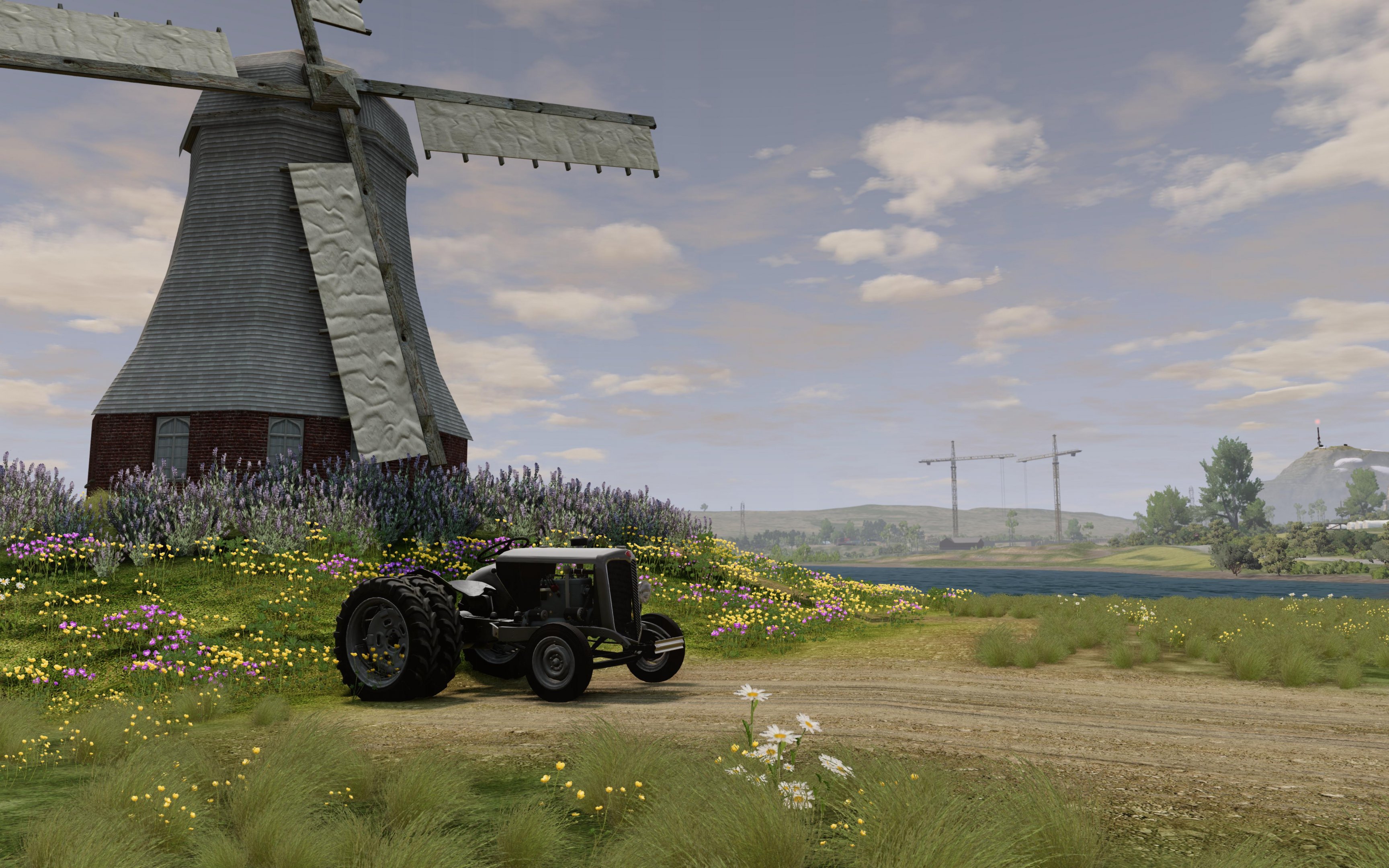 Nice opportunities for agricultural tasks. The long roads are necessary. But I think BeamNG also offers a lot of nice, slow work cars, so decorating the many locations is also important to me. I'm interested in the driving experience and to have the appropriate reasons for driving and different role playing all over the map, even or espacially in rural areas. Here with the nice Nine Tractor mod .