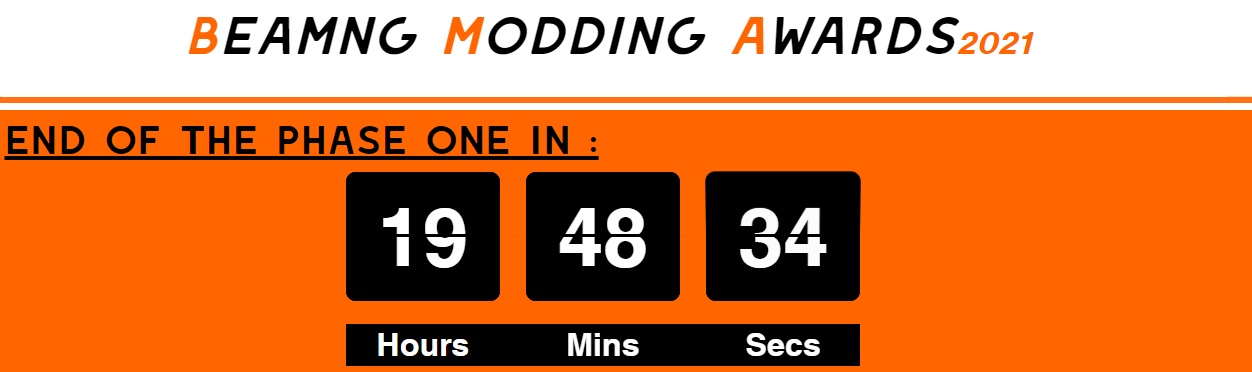 IT'S TIME TO VOTE ! The phase two just started, you have until January 2, 2021, at 11:45pm (Paris Time) to vote ! https://kemroindustries.wixsite.com/beamngmoddingawards/phase-two