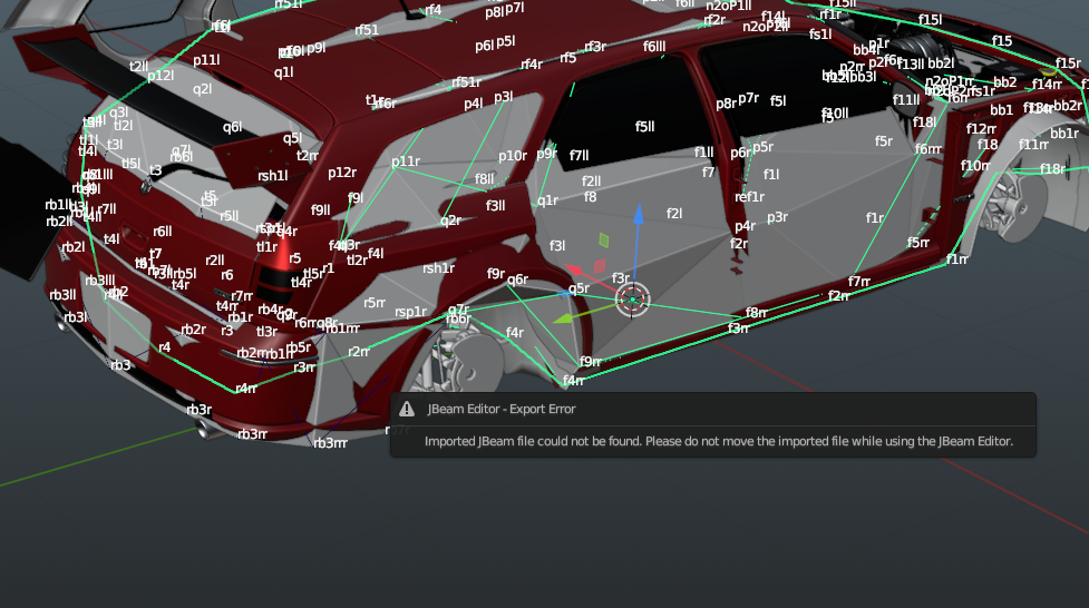 Trying to create a part from scratch. I brought in a model, converted to jbeam, and when I go to export I get an error. I've tried creating a new jbeam, saving to an existing jbeam, importing a jbeam first and saving to the same or new file. Any thoughts?