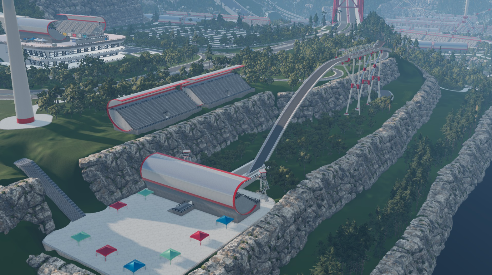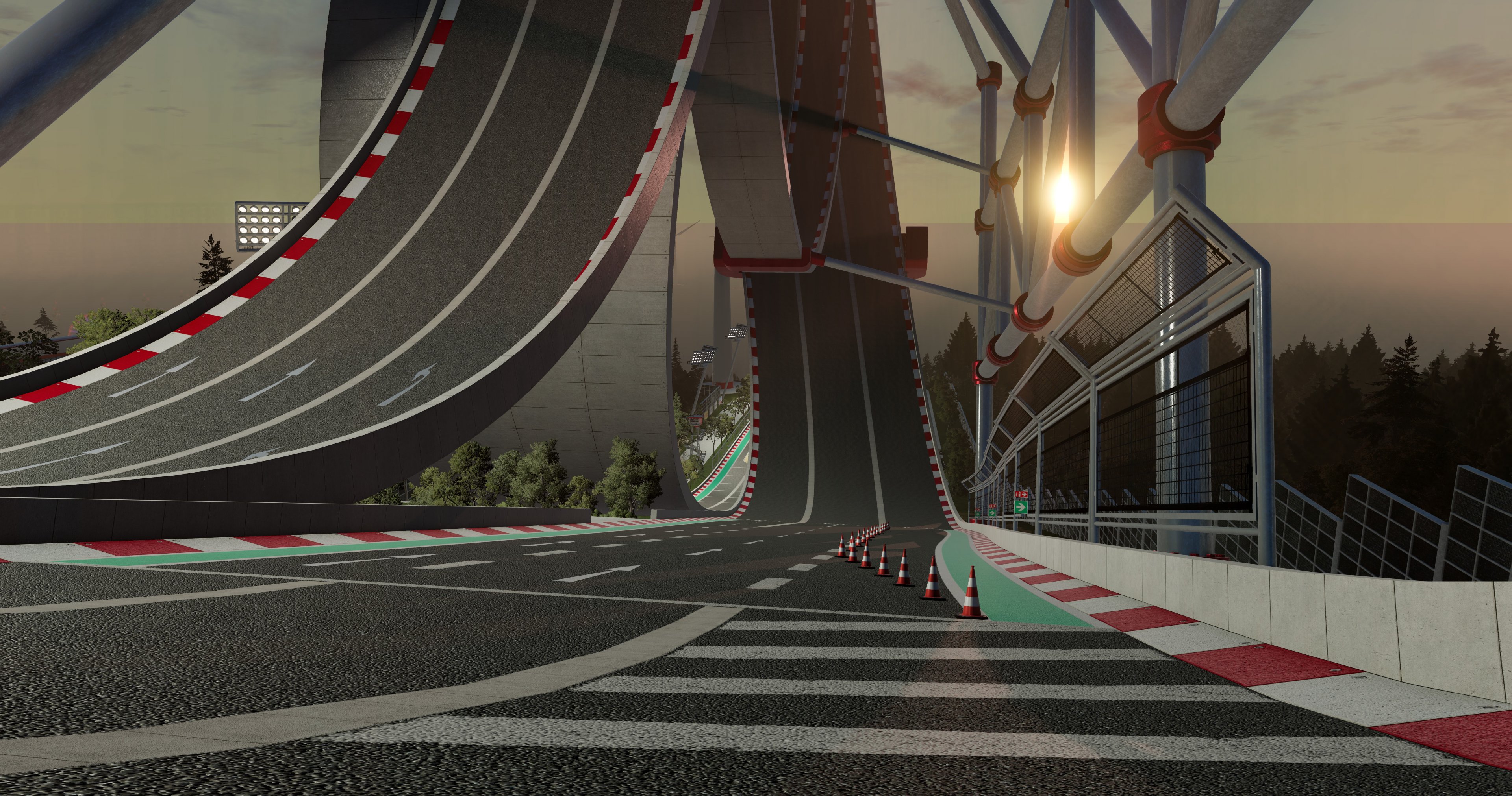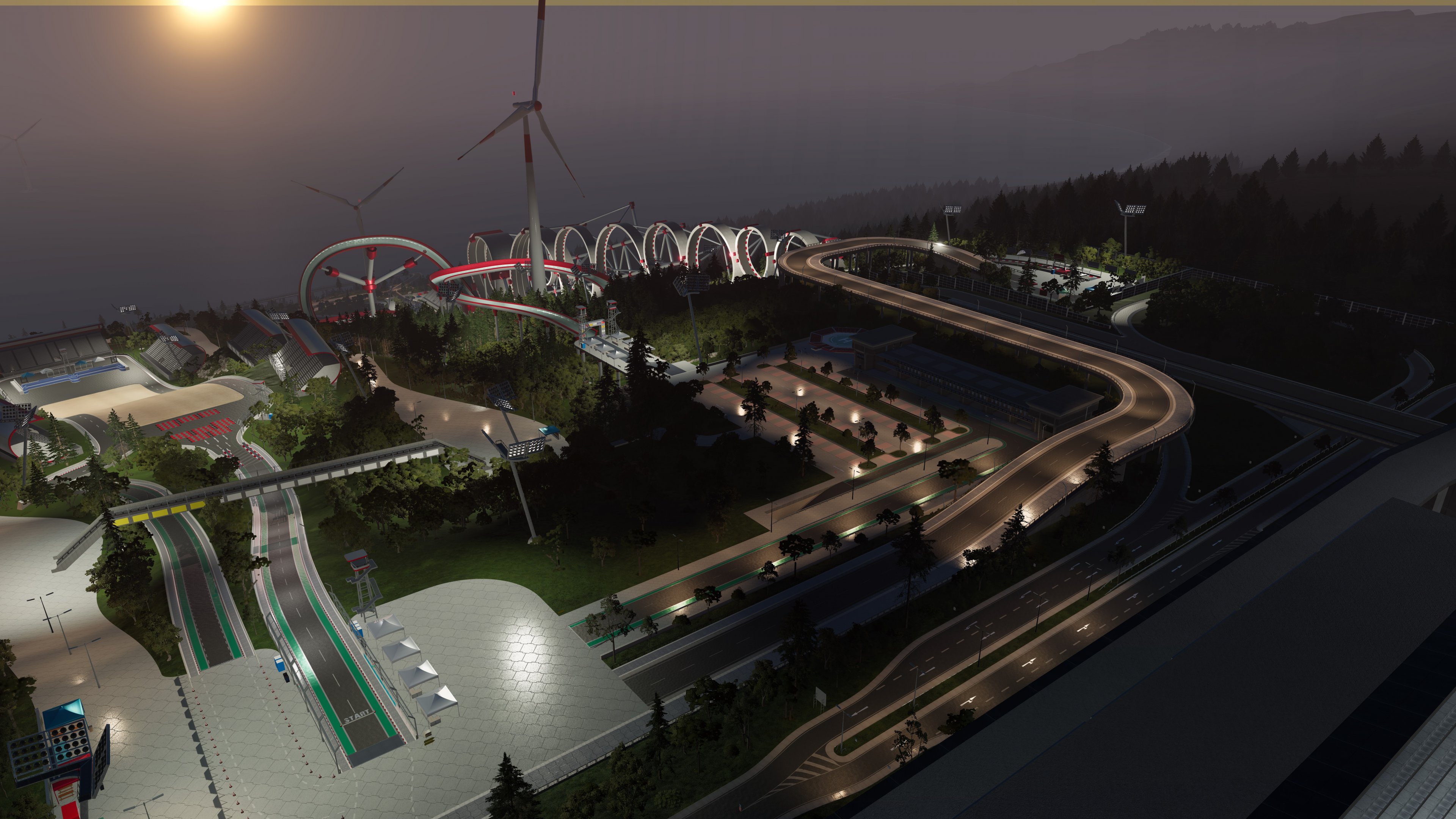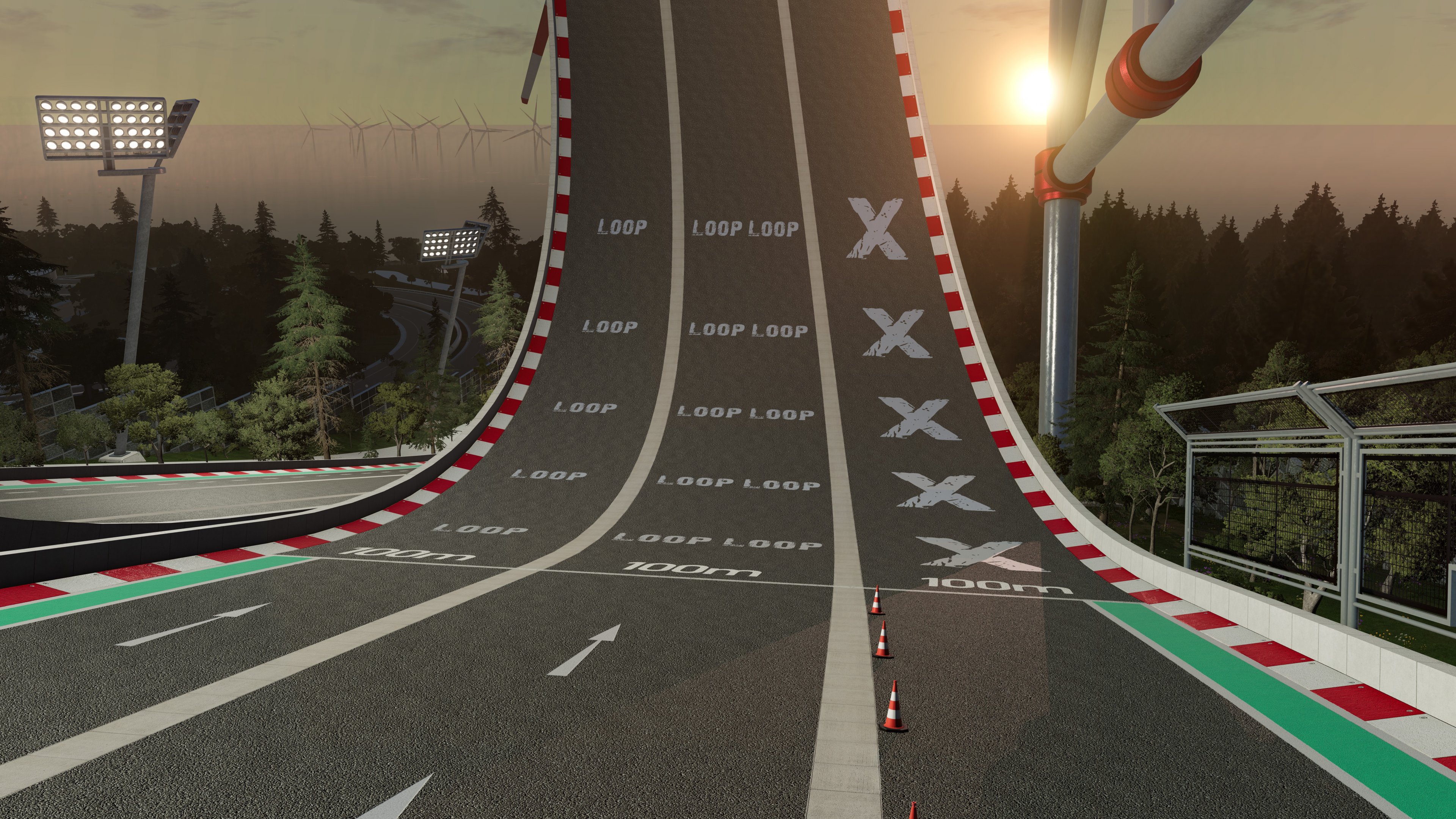 Here is an idea for a car game called Drive Without Engine. The idea is to turn off the engine at the perfect moment and drive as far as possible without hitting a wall of lasers that will destroy the car. And two attractions (for people) at Beamhausen Drift Club and Benger Racing Track (two screenshots in the next post).