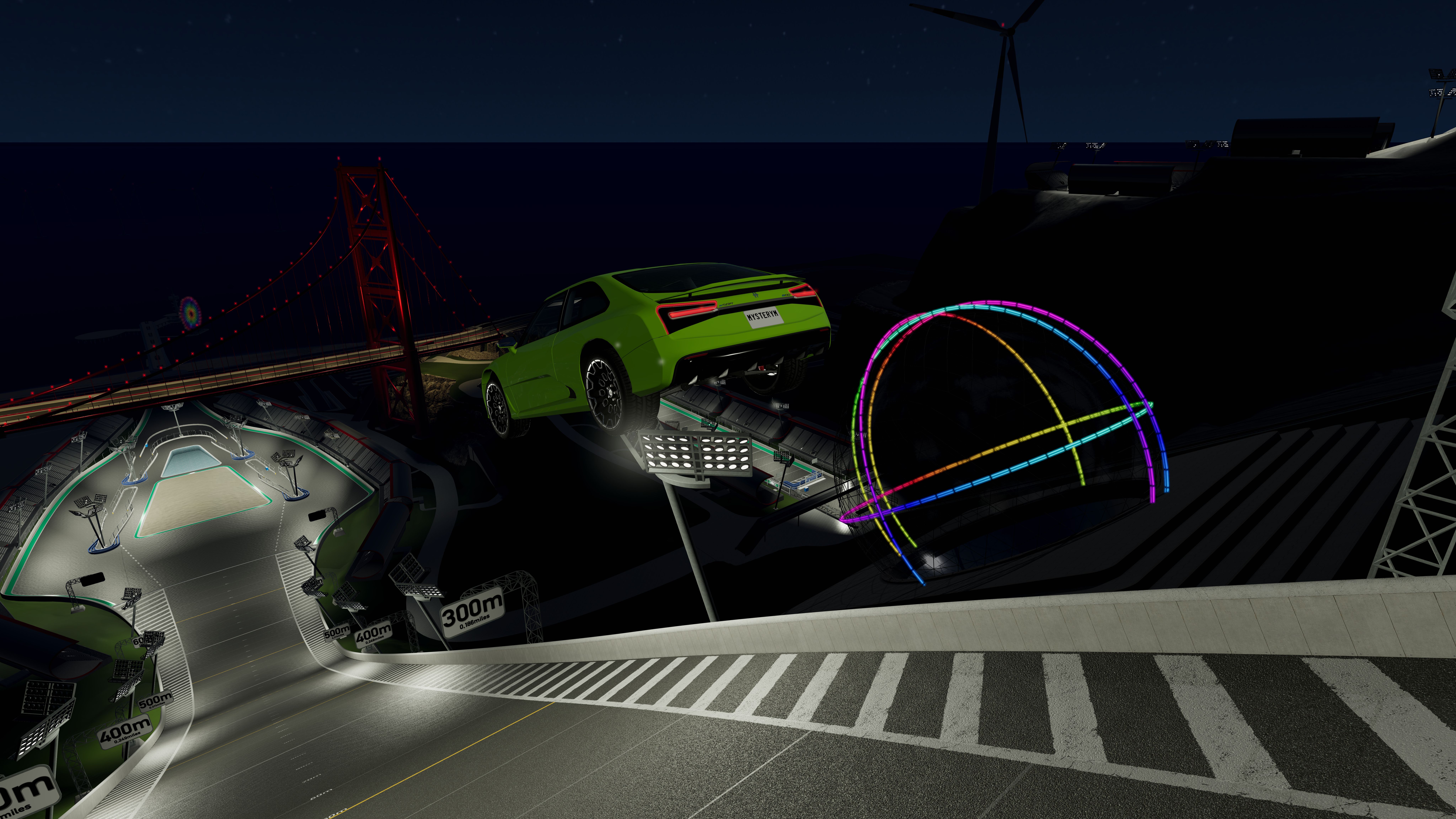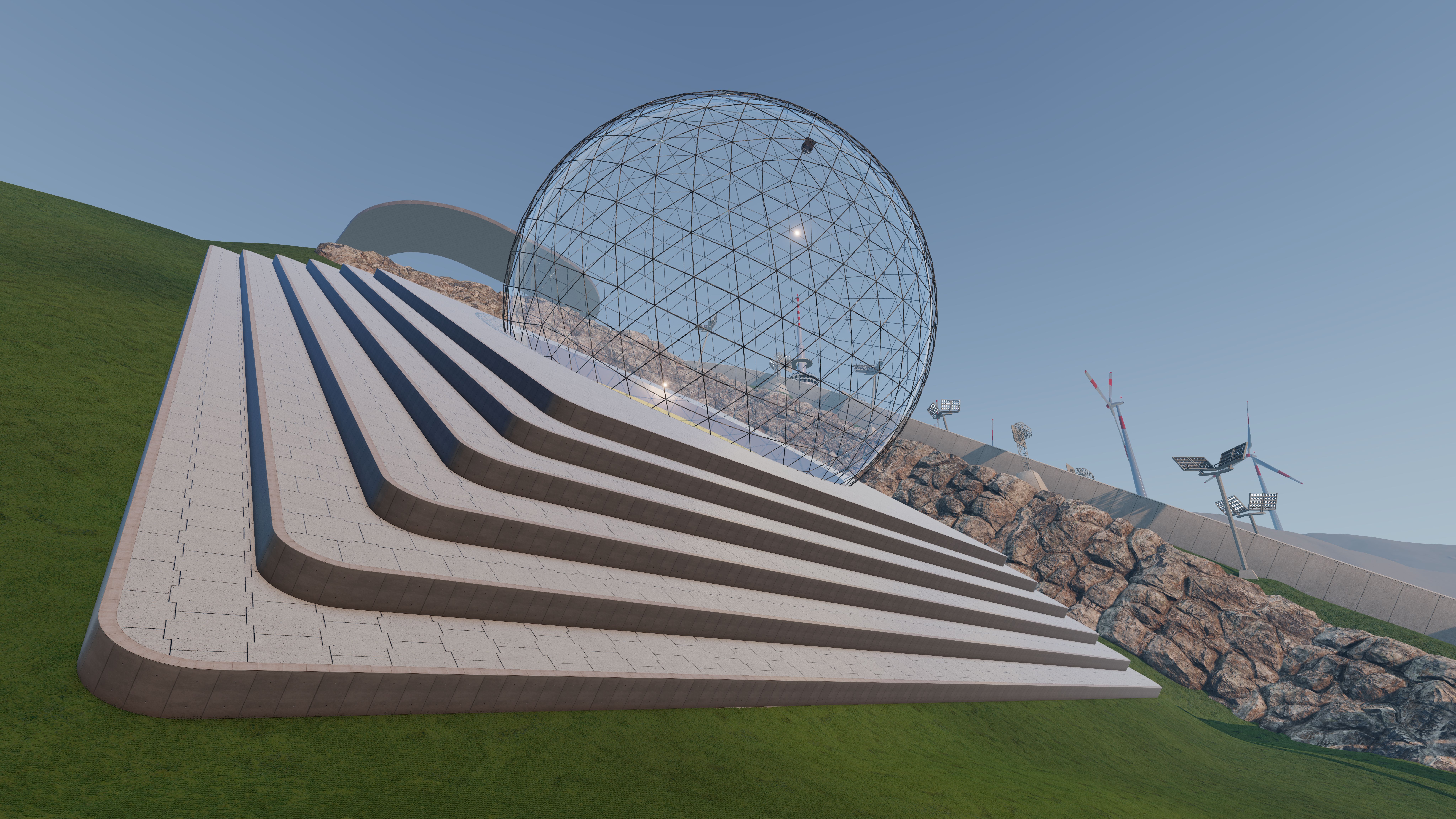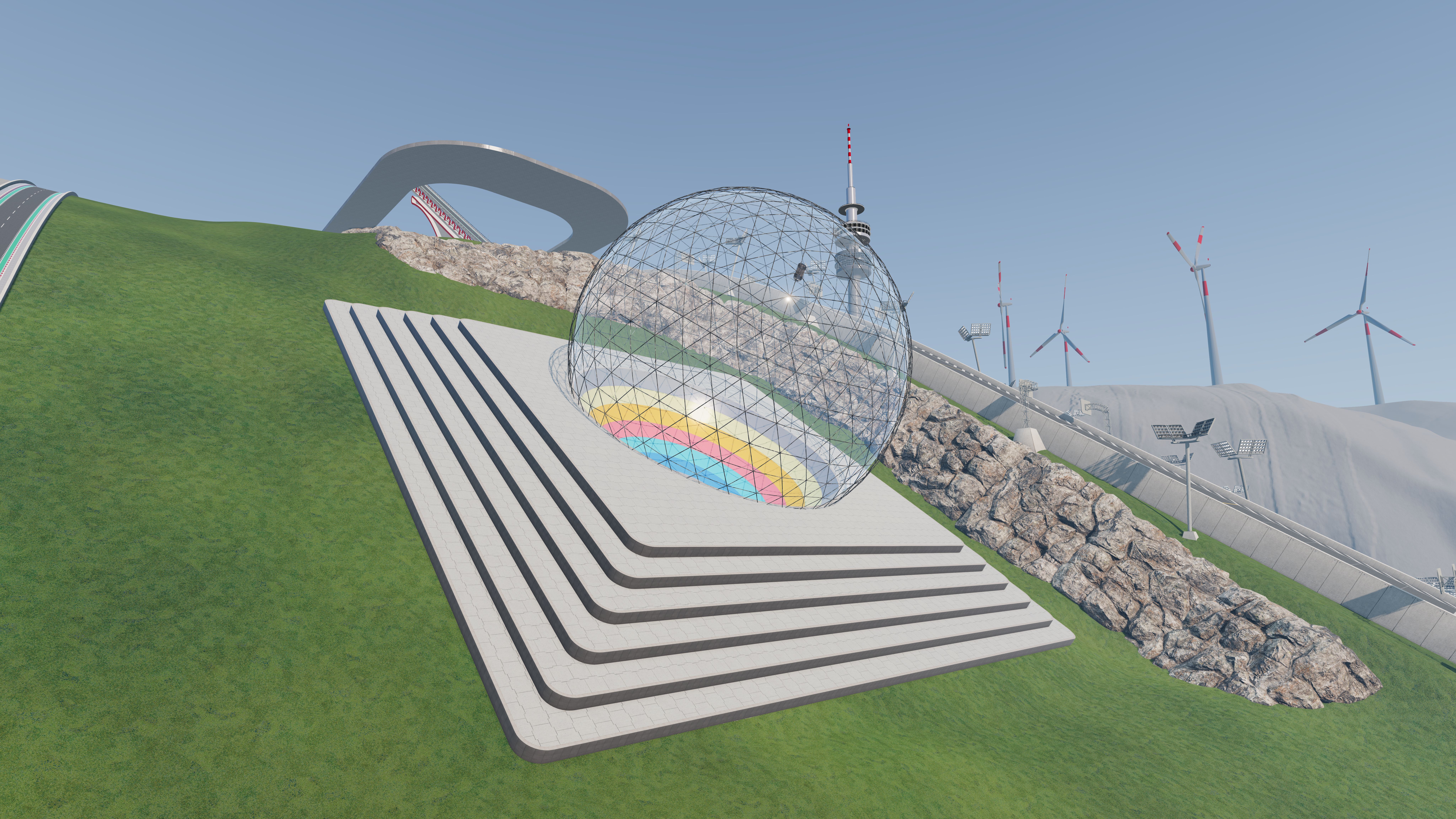 A little more progress on the glass sphere. LED circles are moving around the sphere. At night in combination with the dynamic lights this will be a disco ball 8K screenshot quality. Work in progress! This time the sphere will have an entry/exit road so you don't get stuck in it. Lots of details are still missing... but I'm working on it. Thank you...but I don't know how to use vertex colors