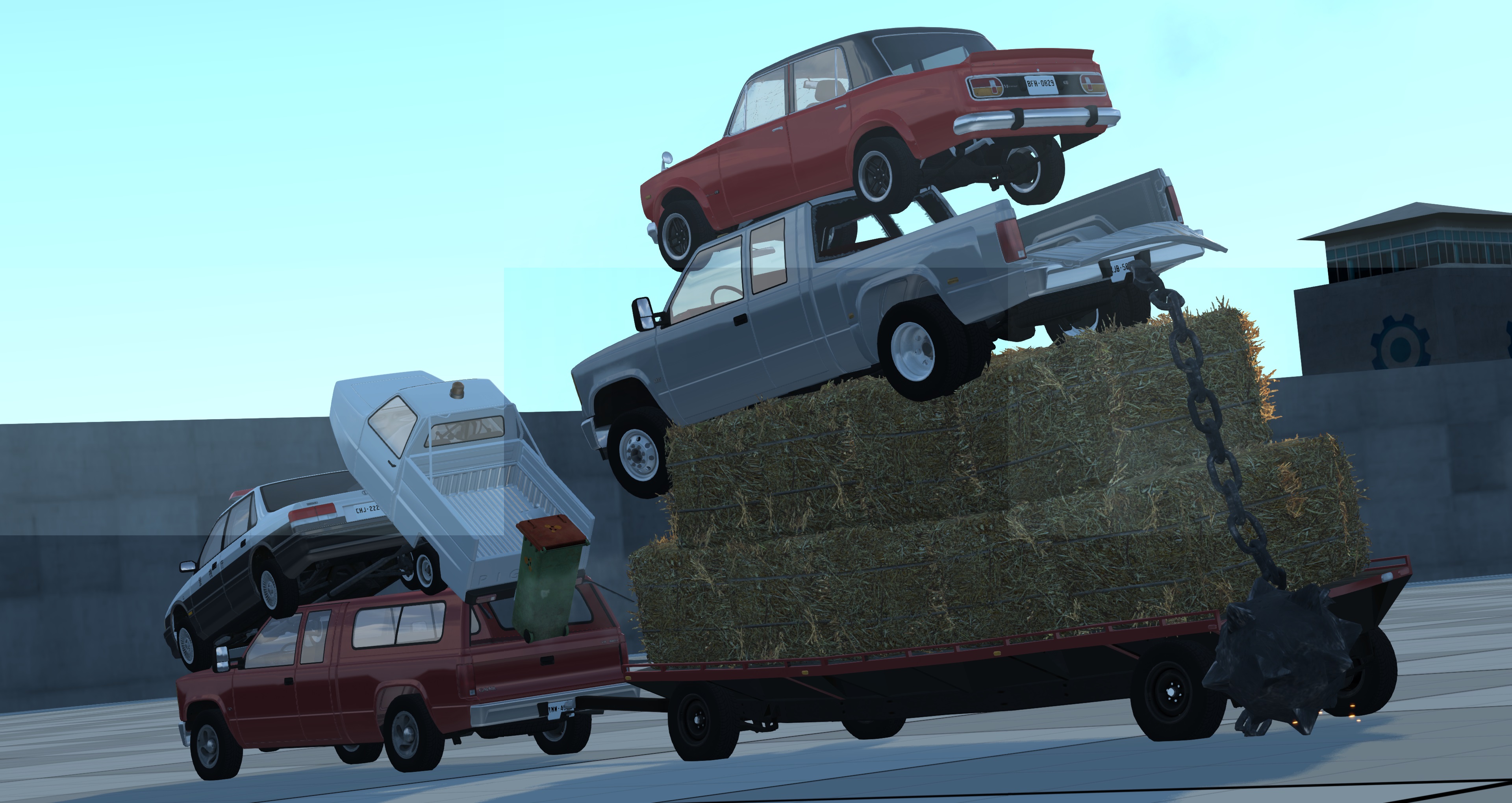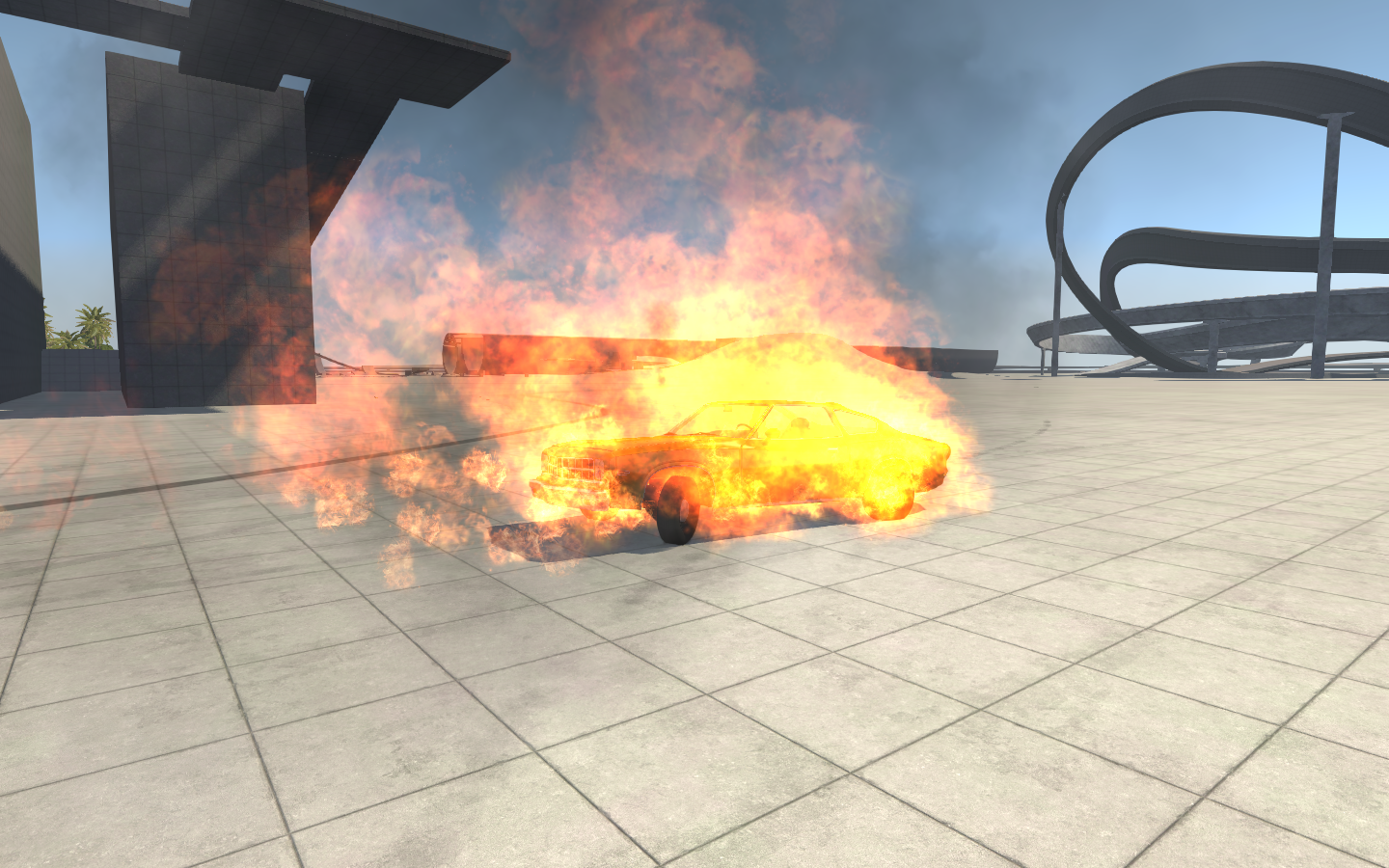 With the right vehicle and some care, you can drive on the railroad tracks! Who needs roads when you have tracks. It is a good thing that the Train is still WIP, otherwise this would be dangerous.