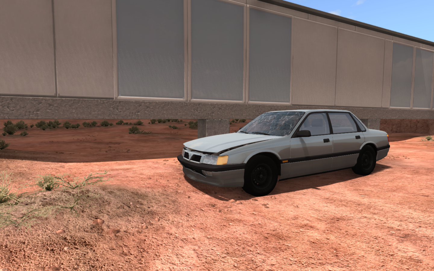 I found a repeatable way to remove the Drag Barstow's front subframe in East Coast USA... Start here: Aim to jump the wall at the end. You'll likely fail to jump over it, and the rear gets caught on the wall. The front subframe should now separate from the vehicle. Watch it fly away.