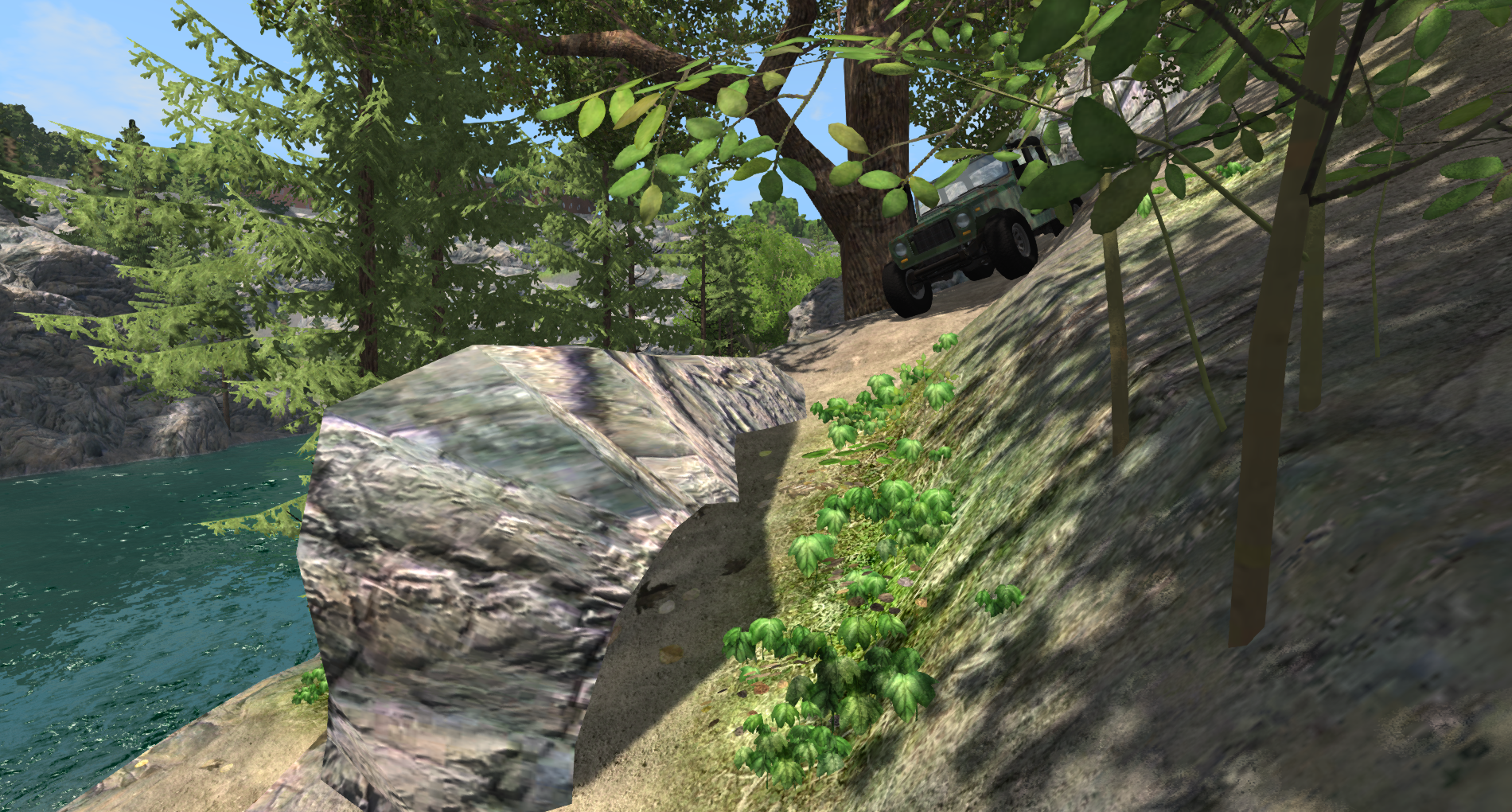 Weird dark thumbnail, it is much brighter when big. Of course you are thinking what good some tiny props would be, that is why it is I who has the imagination, add mechanical linkage and custom input to actuate said linkage: Meh, probably boring Update: There is an old bug at ECA, when you come down to a hill (there is sort of gorge or something), one of those rock formations would need some terrain work to hide empty hollow inside of it: