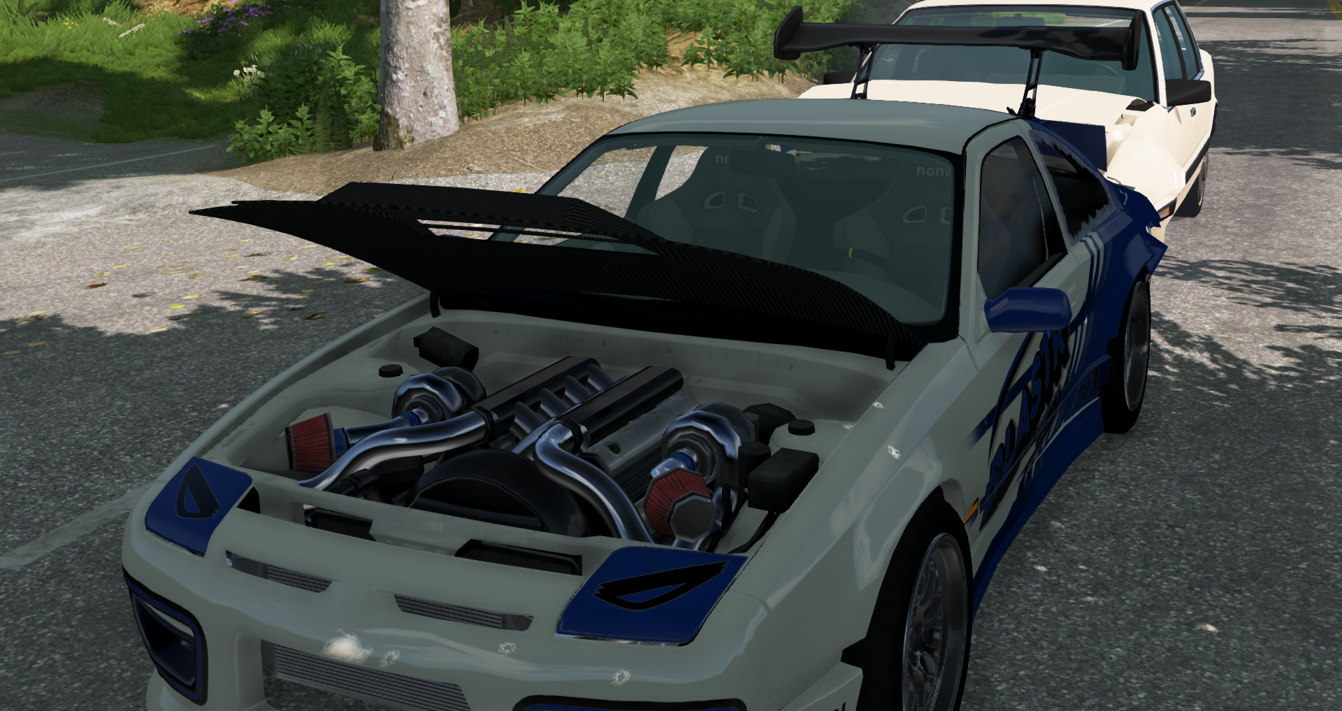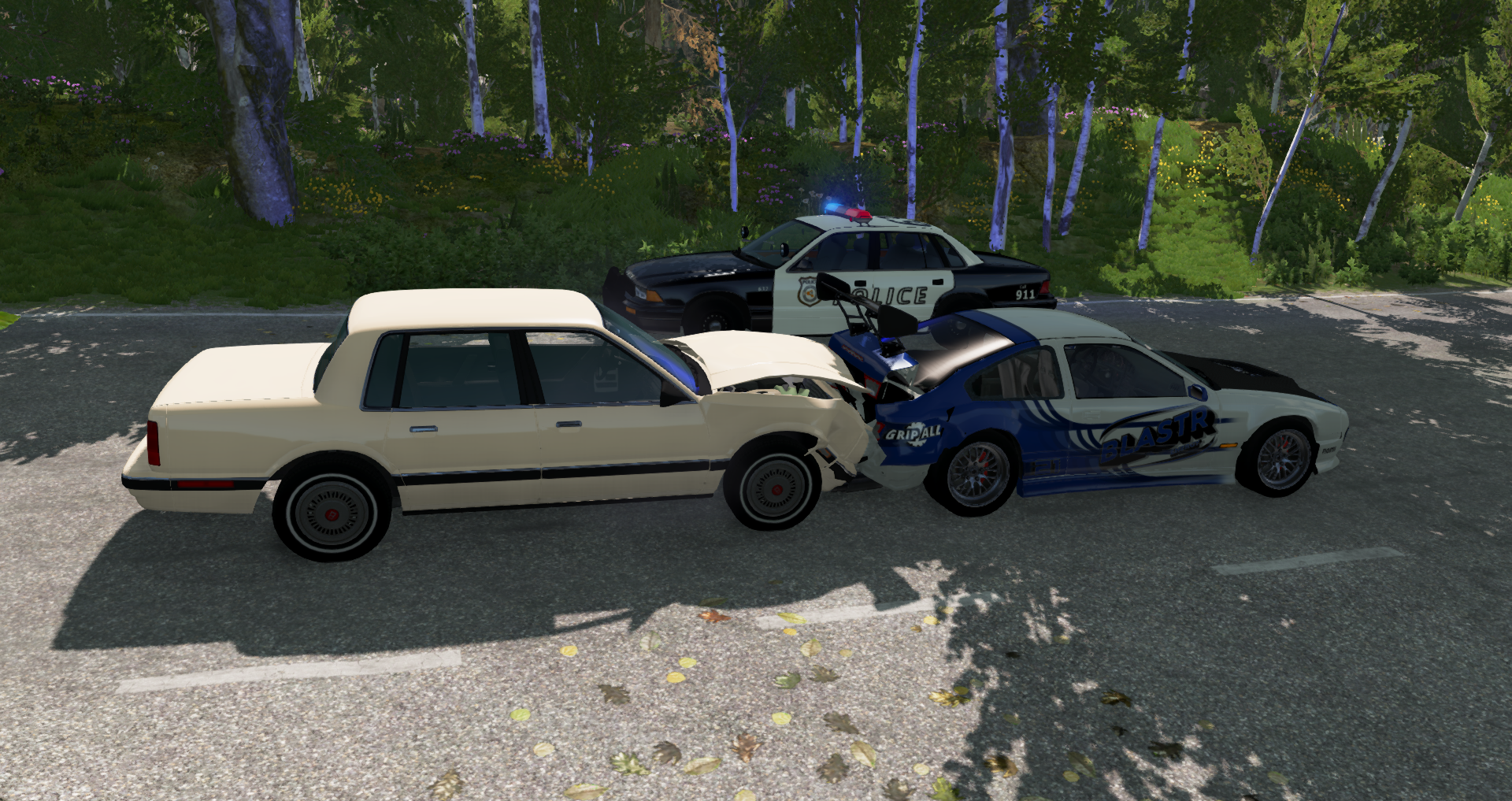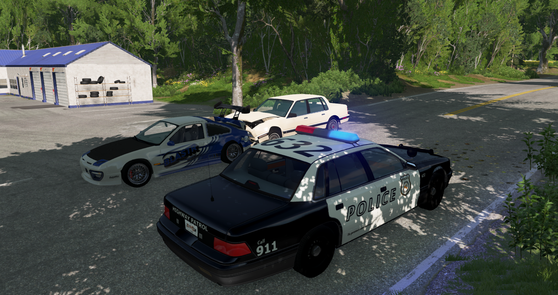 "East Coast Police Department reminding you that even if you have a modified car with illegal mods, and if a driver rear ends you, you will still be arrested!." The driver of this 200bx was very agitated and jumpy after another driver rear ended them while they were driving out of Nodeoline filling station. Upon further investigation we found a highly modified and illegal custom engine. Court case to follow.