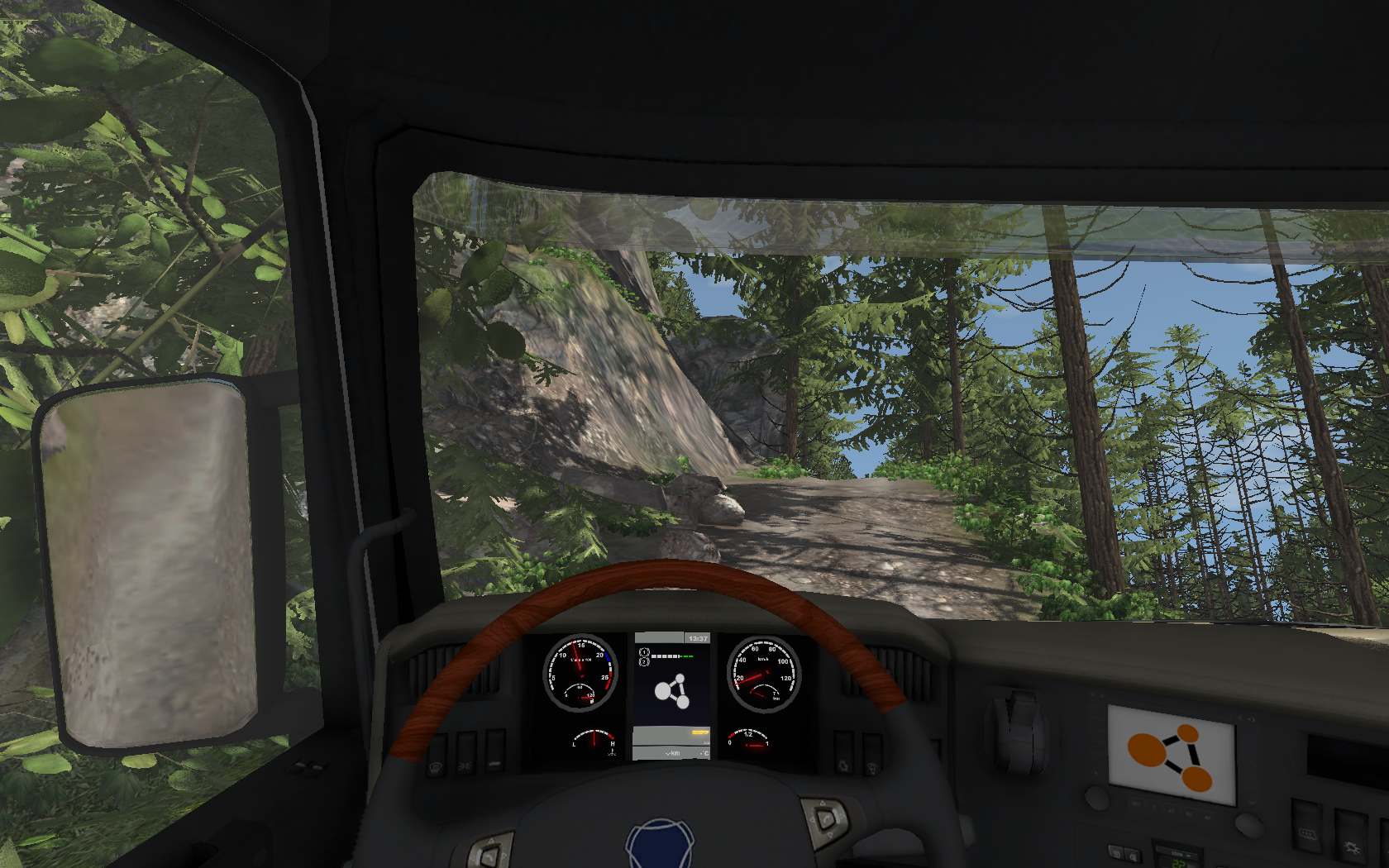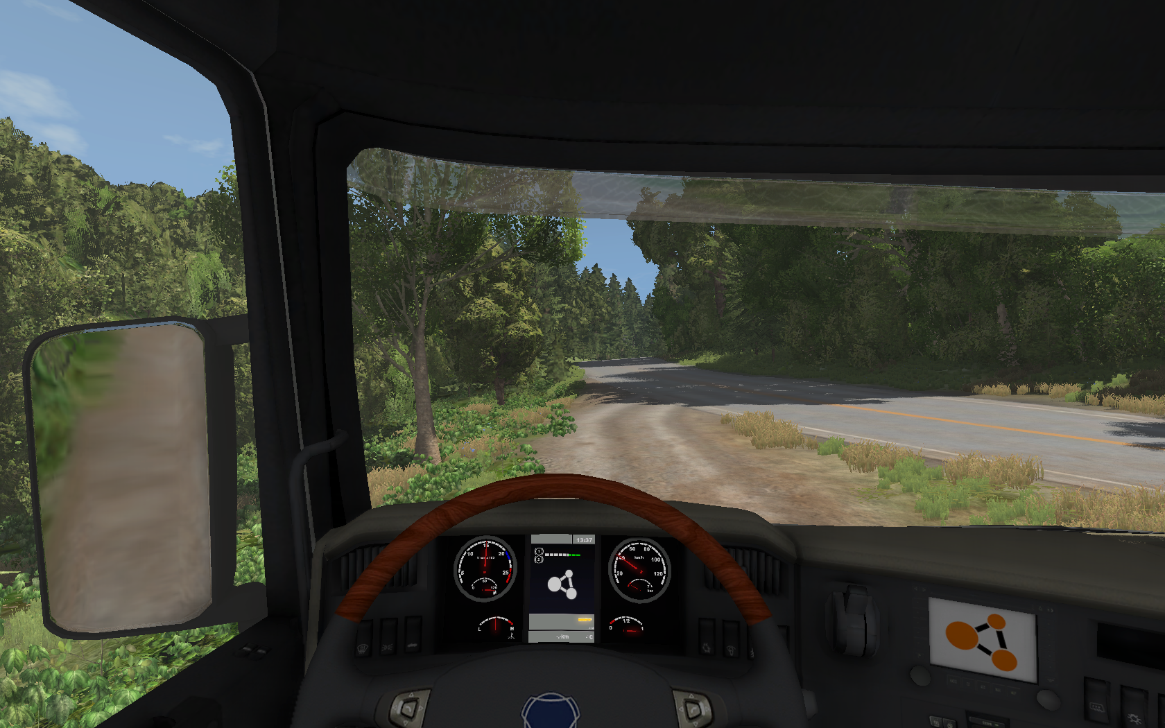 Explored East Coast USA a bit with the Well, driving this on smooth, wide roads is kinda boring so the only opinion were the dirt roads, and this is fun! Until I got stuck The hill was too steep and stones were behind me And 40km/h in a truck feel so fast with 10FPS in the forest