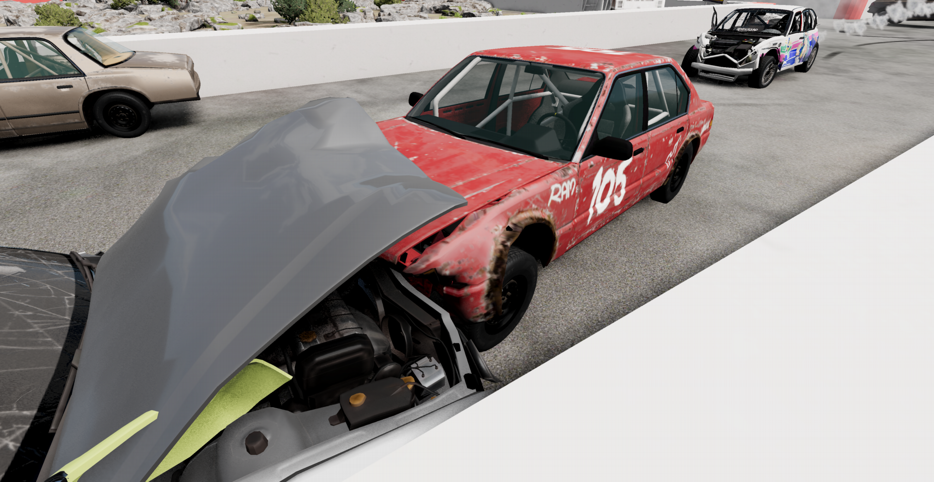when in doubt... force your way through anything that stands in your path... even if can put you out of the race. message brought to you by some maniac that banger raced an ETK 800 and somehow managed to win.