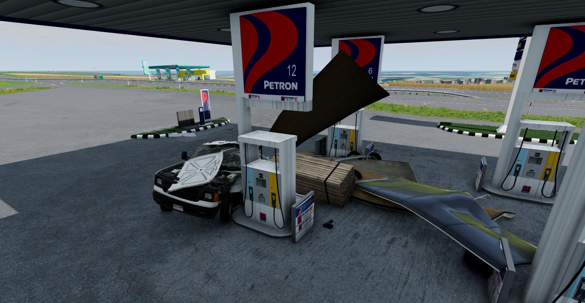 How I flattened the cars....Using 'World Editor', lifted the core 'BeamNG' empty Container prop above the car then just dropped it on top:p