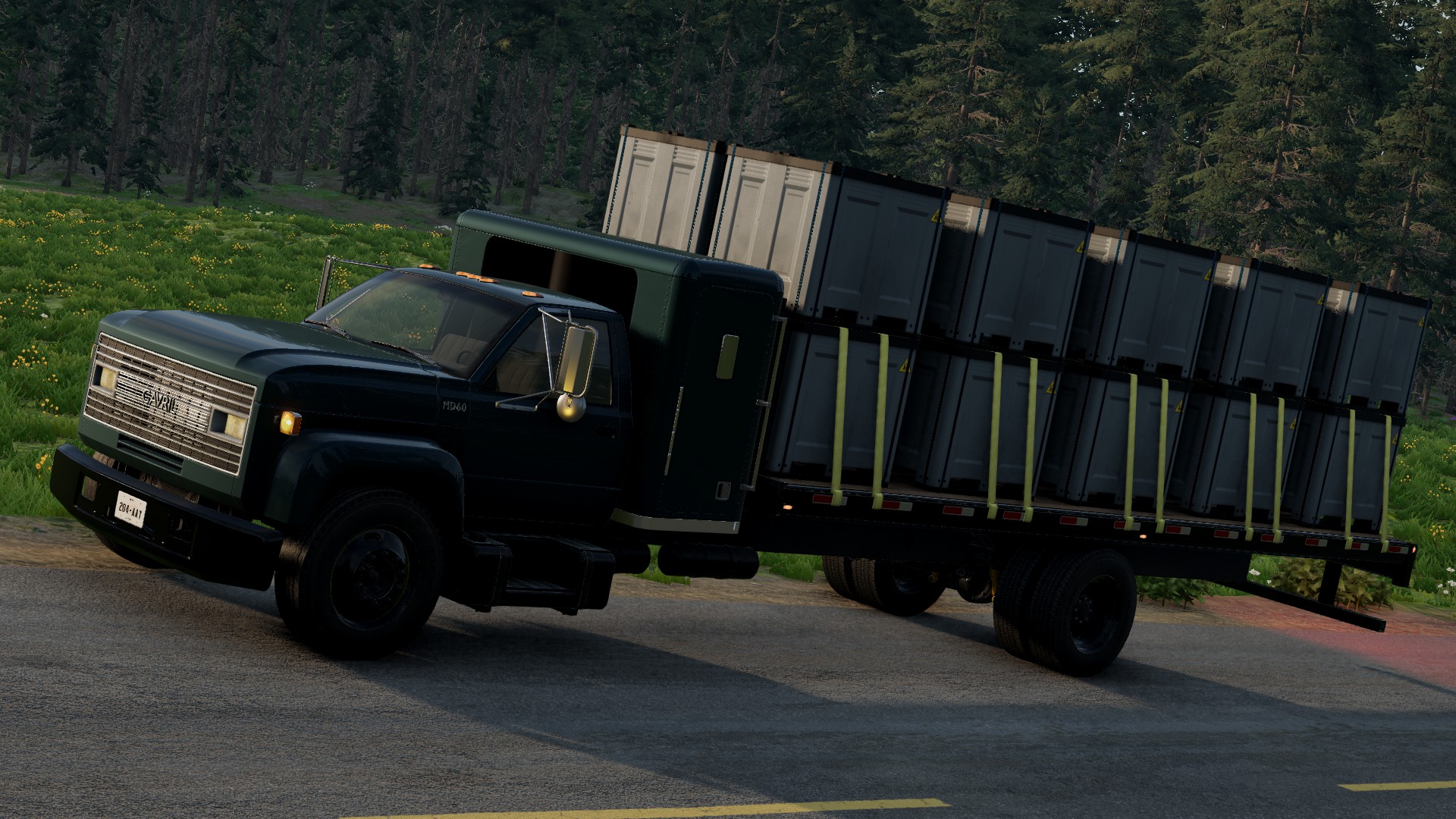 Another Livery design, this time using a screenshot I produced a while back with my favorite B25 Bomber, minus wings, on the back of the Logging Trailer, fit perfectly with the help from World Editor'...lol.