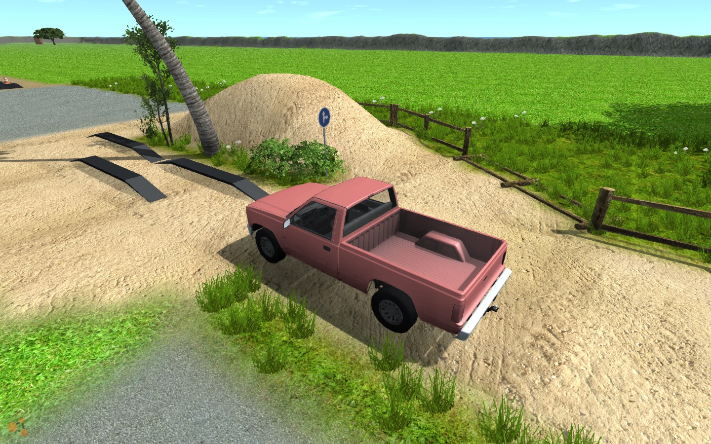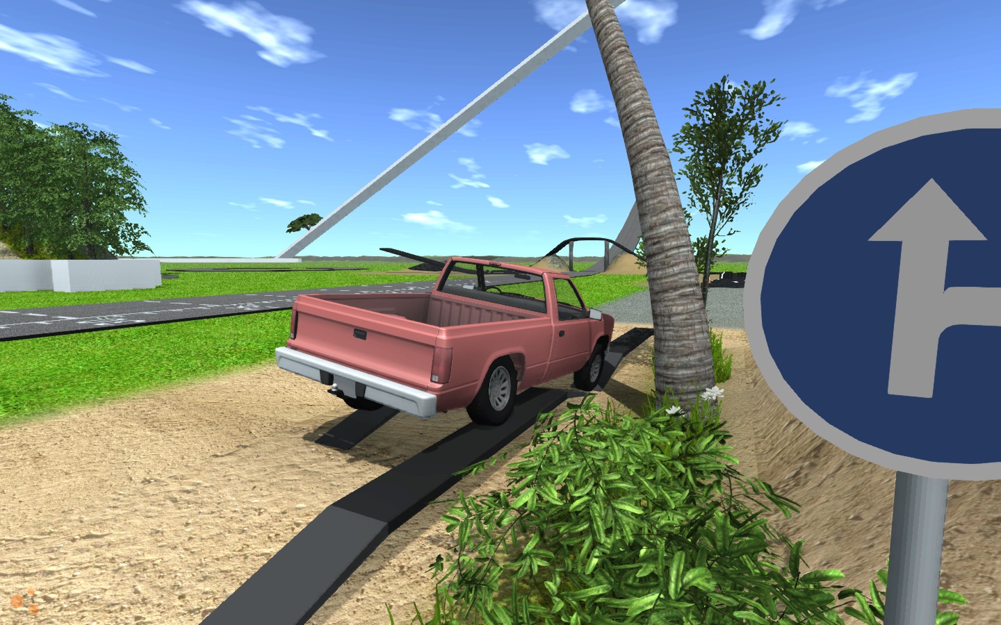 1. About the bump, ye you're right, I will modify it and upload it again. You know I always tested the map with the pick-up hehe. 2. I don't have a problem with missing textures, I'll wait and see if someone else has that problem too. 3. That was supposed to be in the map but it's not working because it was done with the road meshes that come with the editor and have no collision whatsoever with the vehicles. I just left it there hoping that one day they will be supported. 4. The tunnel is not working. It's another of those things I did before the game was released and I didn't know that erasing the terrain it's just visual, so the collision is still there, that's why it's blocked hehe. 5. The white lines, and also the black/yellow bumps can get buggy if you brake while going over them, but that happens in any map, if you brake near a sharp edge, chances are the wheels will get stuck and do quite a lot of damage to the vehicle. You have to be careful with that.
