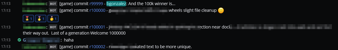 Pretty spectacular! I joined the team when we at less than 40,000 commits, it's incredible that there have been over 60,000 changes to the game in just over 3 years! (and each "change" can represent 10s or 100s of changes within them!)