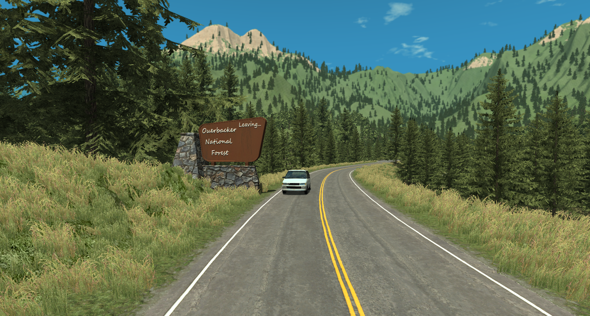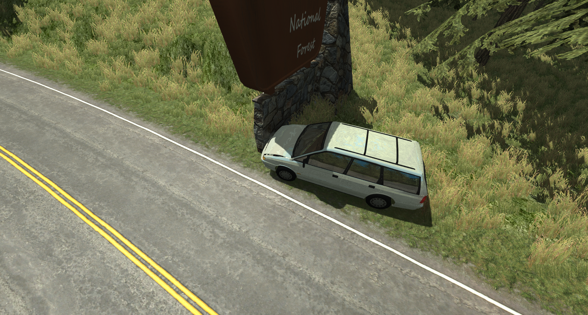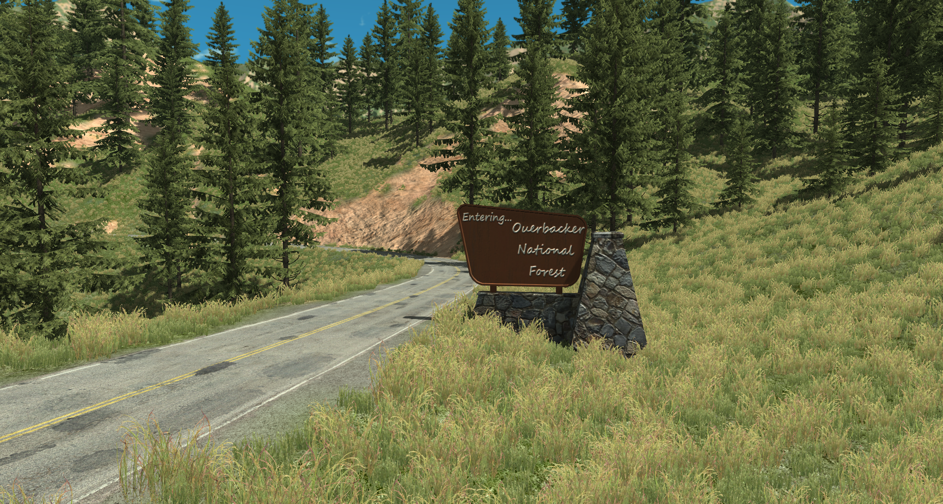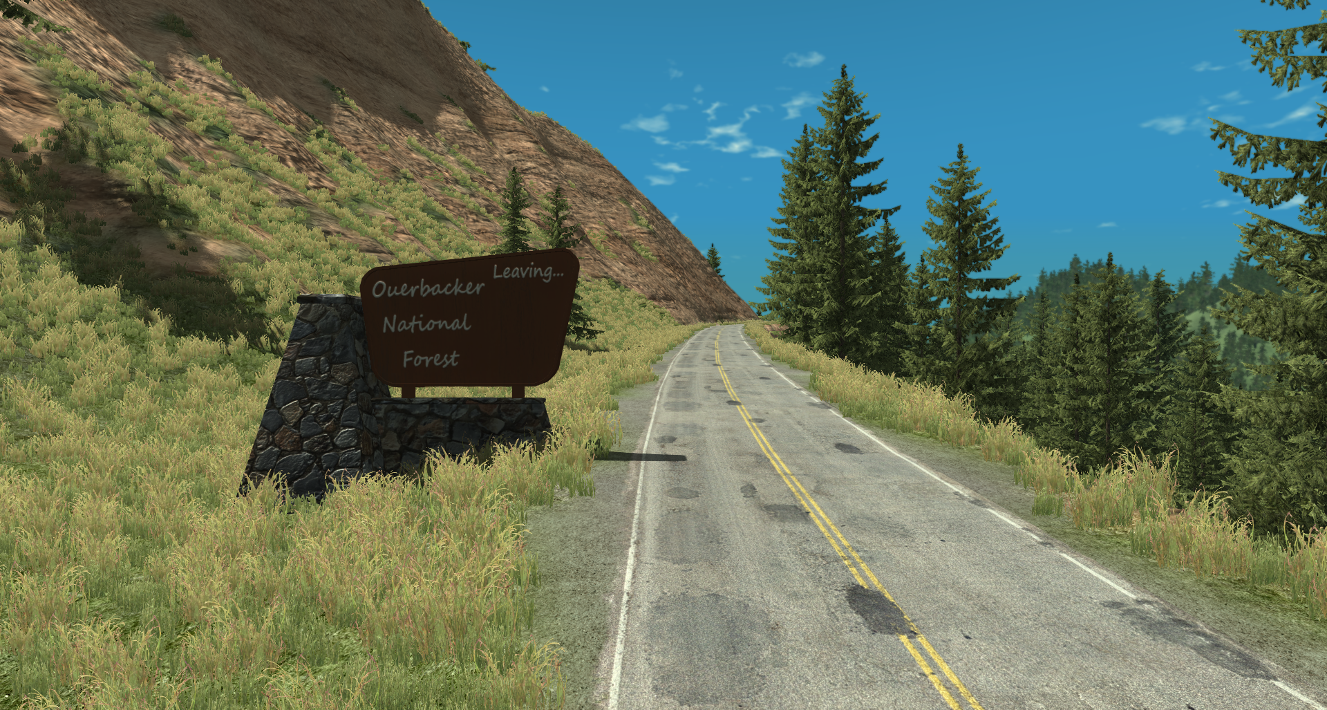 First static object I've made since 2015; It's not that great, I just threw it together to get a feel for making and importing stuff. I still need to test it as a forest object to make sure I don't get any weird crap going on there, then from there I guess it's higher quality stuff It's ultra low poly, I'm going to try to keep these new assets as low poly as possible, while still maintaining as much detail as possible.Though I'll be aiming for some more model detail The road texture is temporary, it's missing the middle dashed line and the median side color is wrong, but you get the idea. I was a bit worried we were going to have some "can opener" shenanigans, though it doesn't look like we'll have to worry about that here... Maybe somewhere else