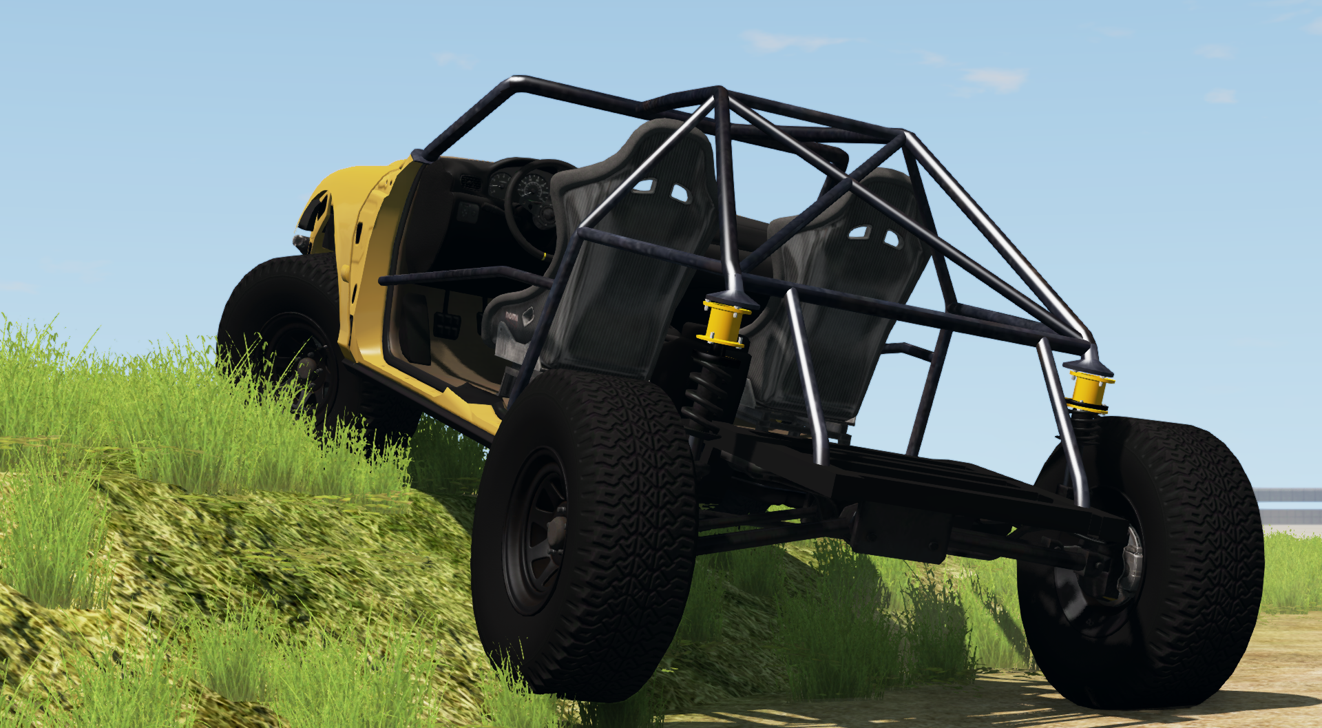 Fitment is bad, because I need to tune suspension jbeam. Before anyone frowns and calls this a meshslap, it actually is scratch jbeamed, however it does source some parts from the bolide such as frame and suspension which has been modified. Though it does contain one characteristic associated with a "meshslap", being the model is not of my ownership. The model was kept to its original realistic scale, and it has been jbeamed around the model. And before anyone calls this a shit mod, this is a great improvement from where I used to mod.