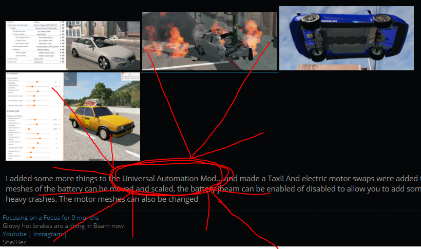 The car in the first image is something I took from the repo for testing. The universal mod is still very much wip and lacks actual content. The customization right now is limited to drag cars/hillclimb wings/taxis and police cars. However the functionality part is pretty far already. Ill add features like making your cars „2 stroke“ for example. Ill add suspension swaps tomorrow or during the weekend to allow for different wheels on the cars too. Making the 40 planned engines will also be fun... I don’t predict this mod to be done before summer next year, as I’m currently doing it all Solo