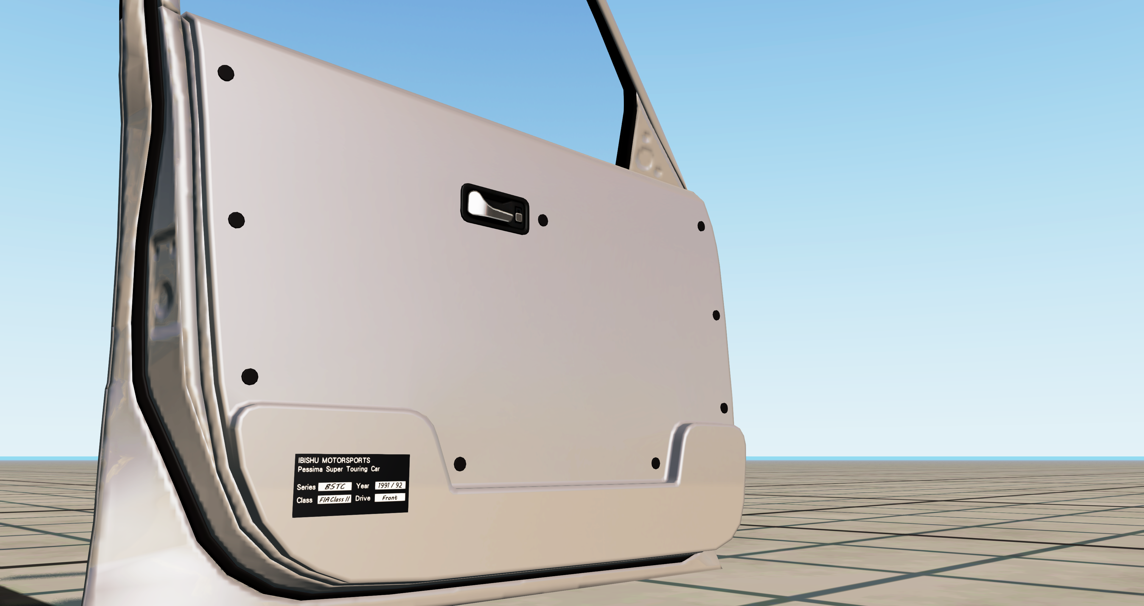 Rear Lips - one for the track, one for the road. Door Cards - with Pessima handles and some non-descript homologation sticker thing. And it's all (mostly) skinnable now - nameplates and all. Hack-job test skin not final.