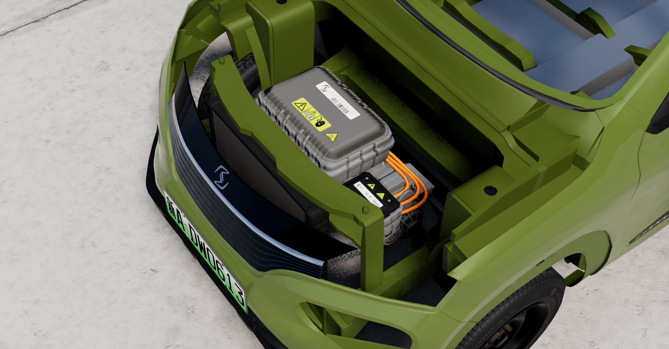 More texturing work, including reskinning the Vivace motor with more hazard stickers and actual Renault part numbers.