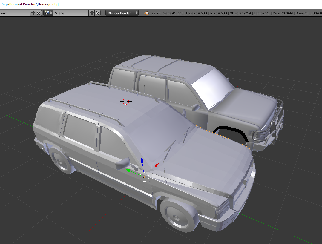 Another glorious w.i.p. Still need to fix an issue with normals on the body, where the rear wheels are located, and get some basic textures for the lights. And maybe change that badge too! Also, the black lines on the side of the hood are from the roamers engine, so Ill fix that when I learn how to engine swap I hope .