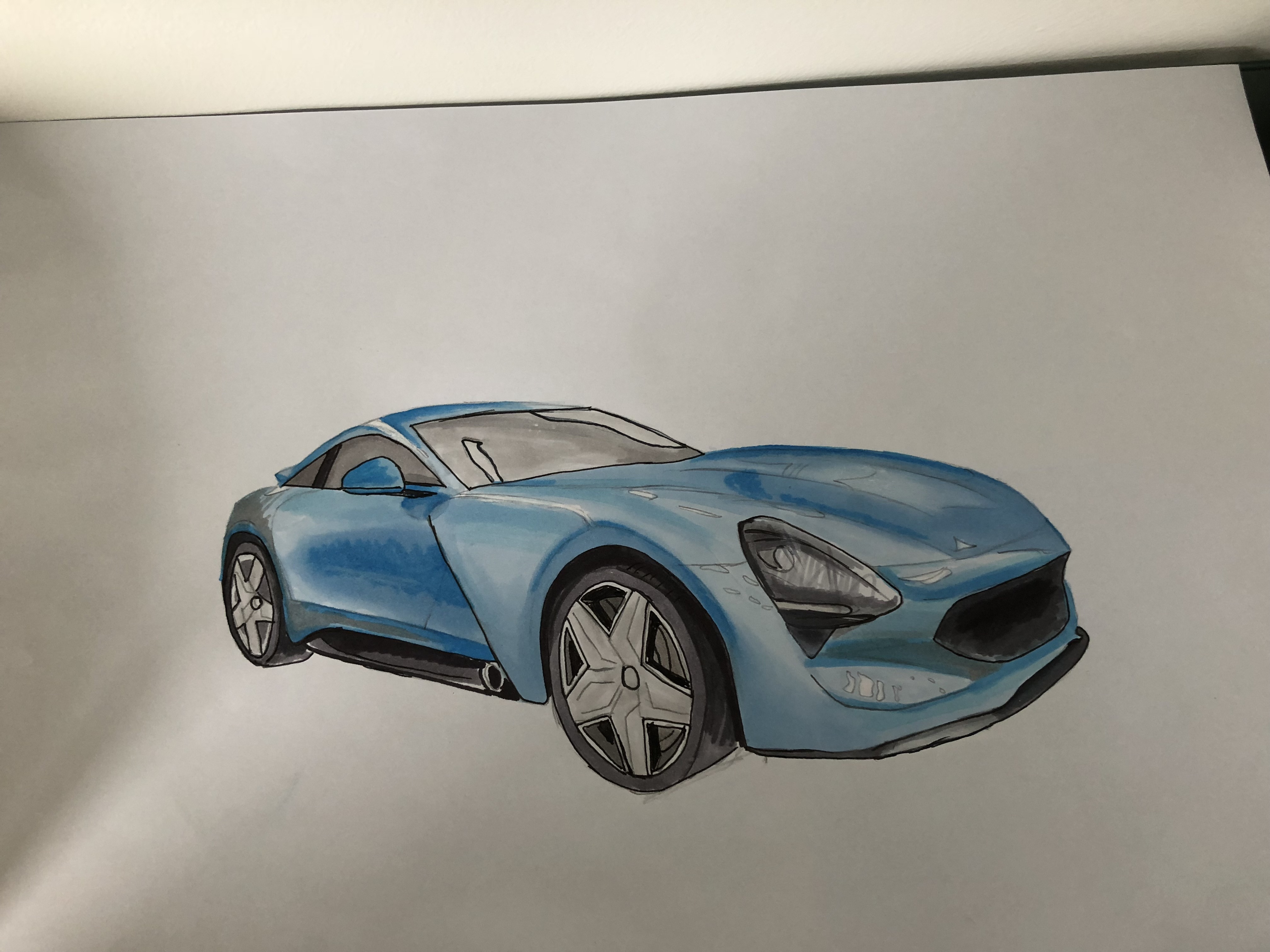 this looks very cool --- Post updated --- I have drawn a simple GT car. I personaly feel okay with it. Pls give advice if u have some --- Post updated --- i would like to say that you make the wheel a bit shorter it might look better
