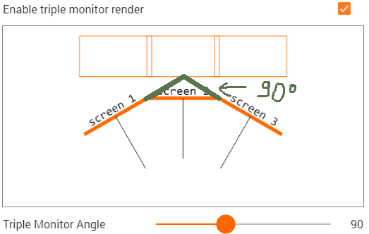 In what fashion is this possibly 90°? It's not the total angle from left monitor to right monitor, nor is it the angle from sides to center, in either direction. It also only has 5 degree increments. Is it supposed to be FOV based? I'm not sure that makes sense either and why would it be called monitor angle?