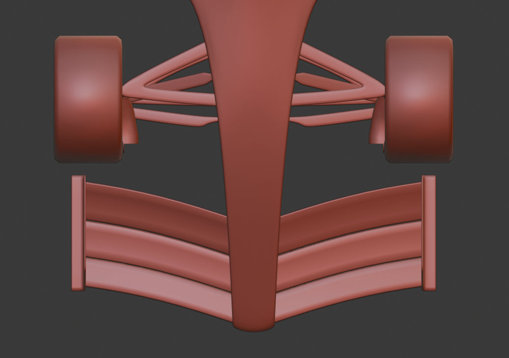 More progress, front suspension is coming together and with some design advice from @OverPower and @Ulrich I've redone the front wing to make it fit the rest of the car better.