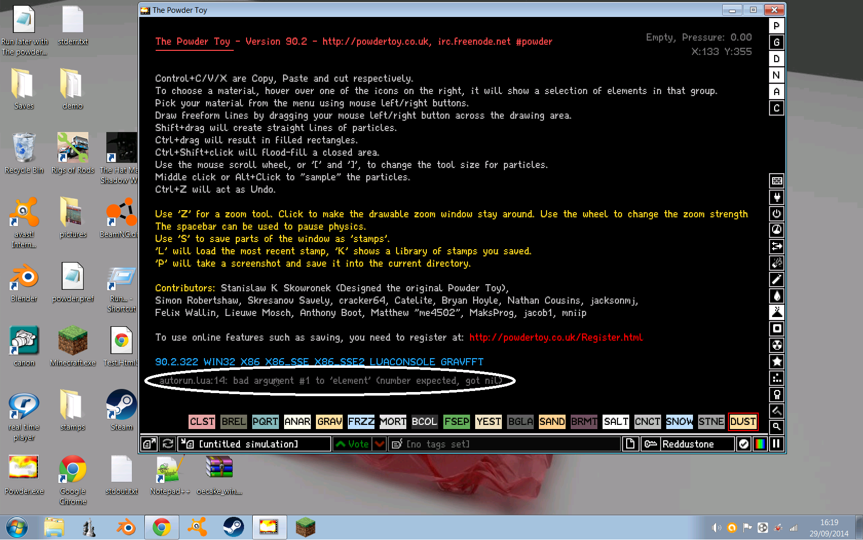 If anyone wants to see my Powder toy creations Type user:Reddustone And you will see some of my things come up.