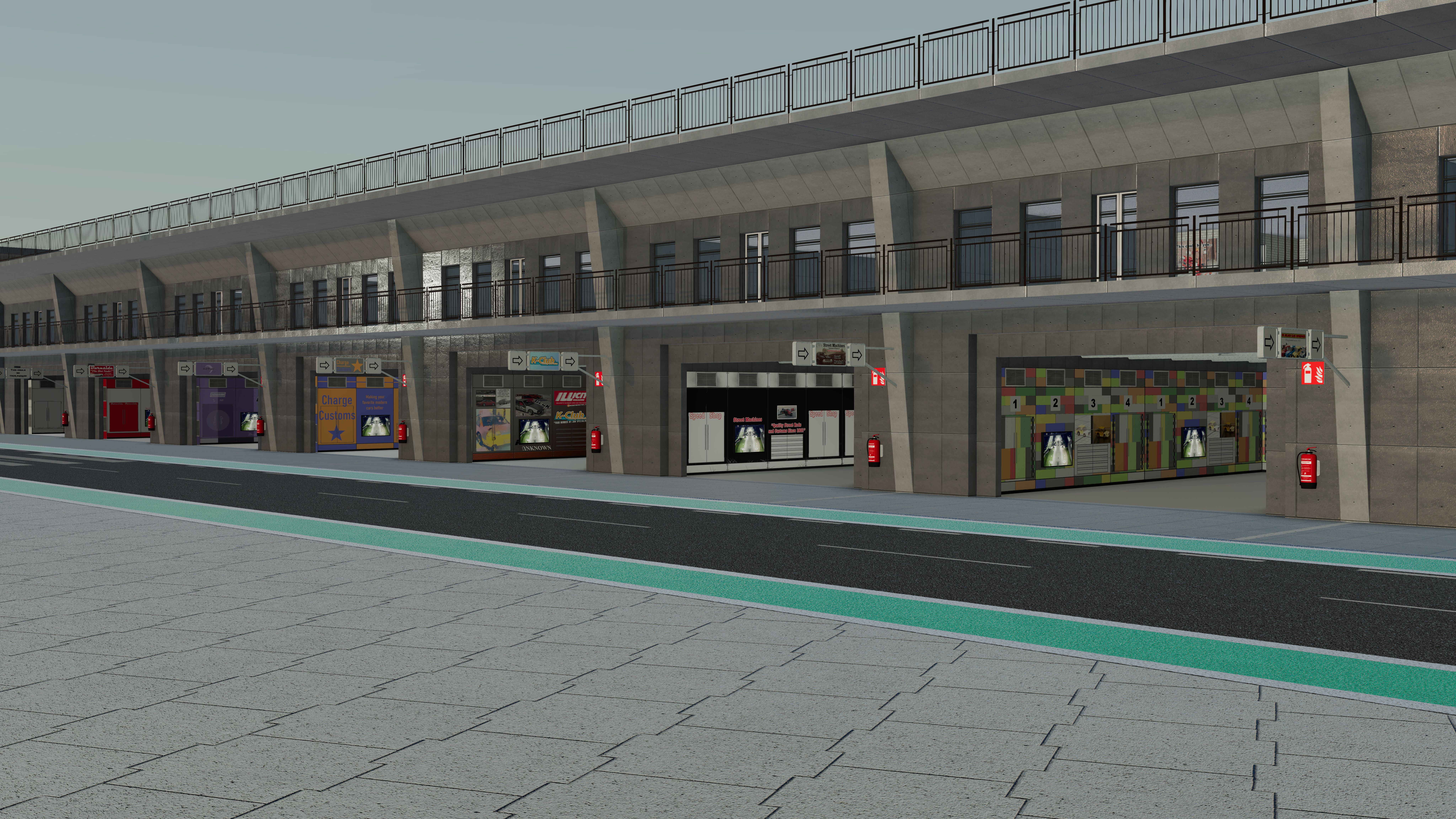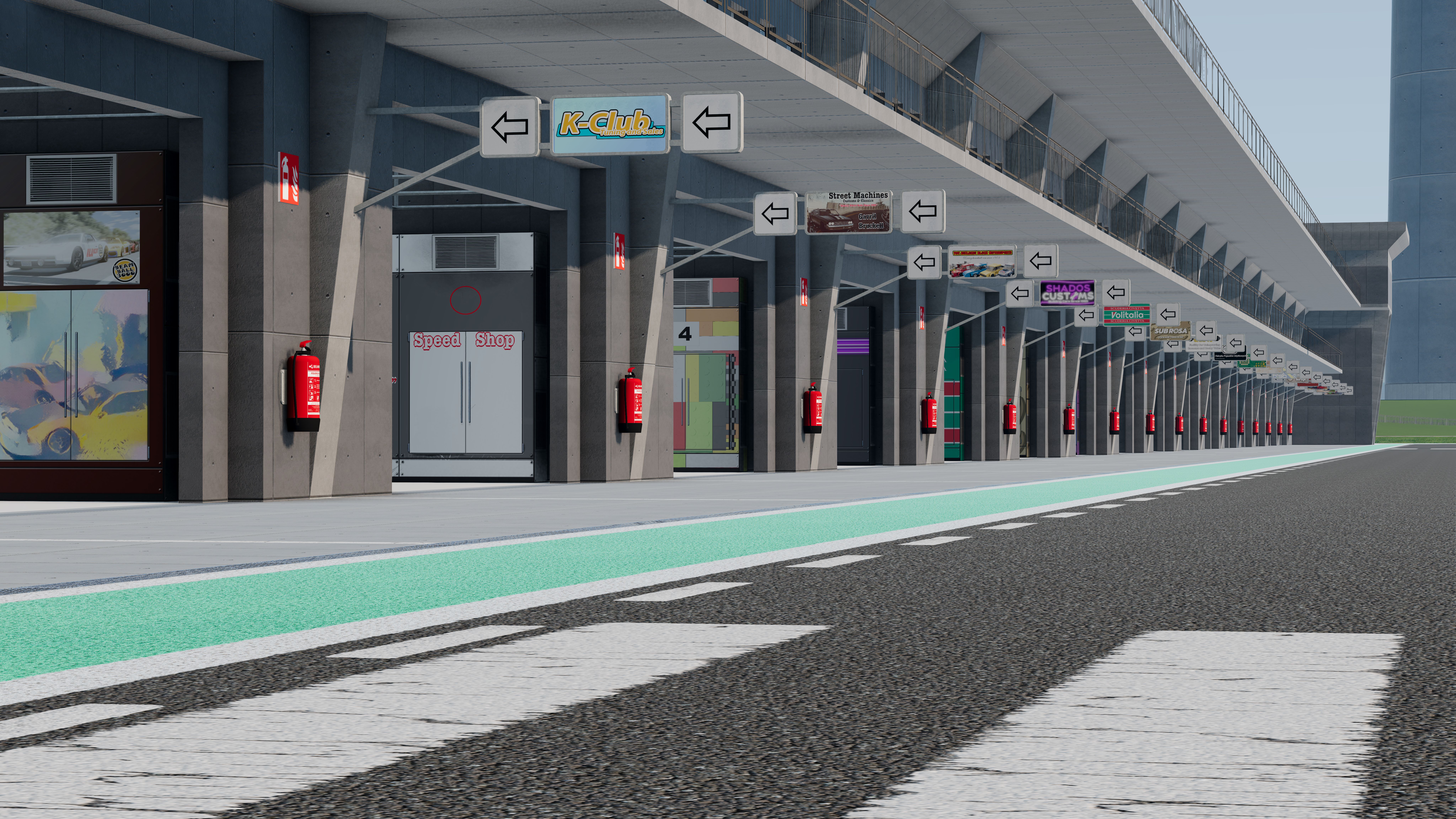 All 23 garages are still left in the lower building. It would be nice to design "Jump-Related" garages there (e.g. "Jump Neilogically - Professional Car Jump Team since 2016" or "Tasty Cola Jump Crew", etc.)