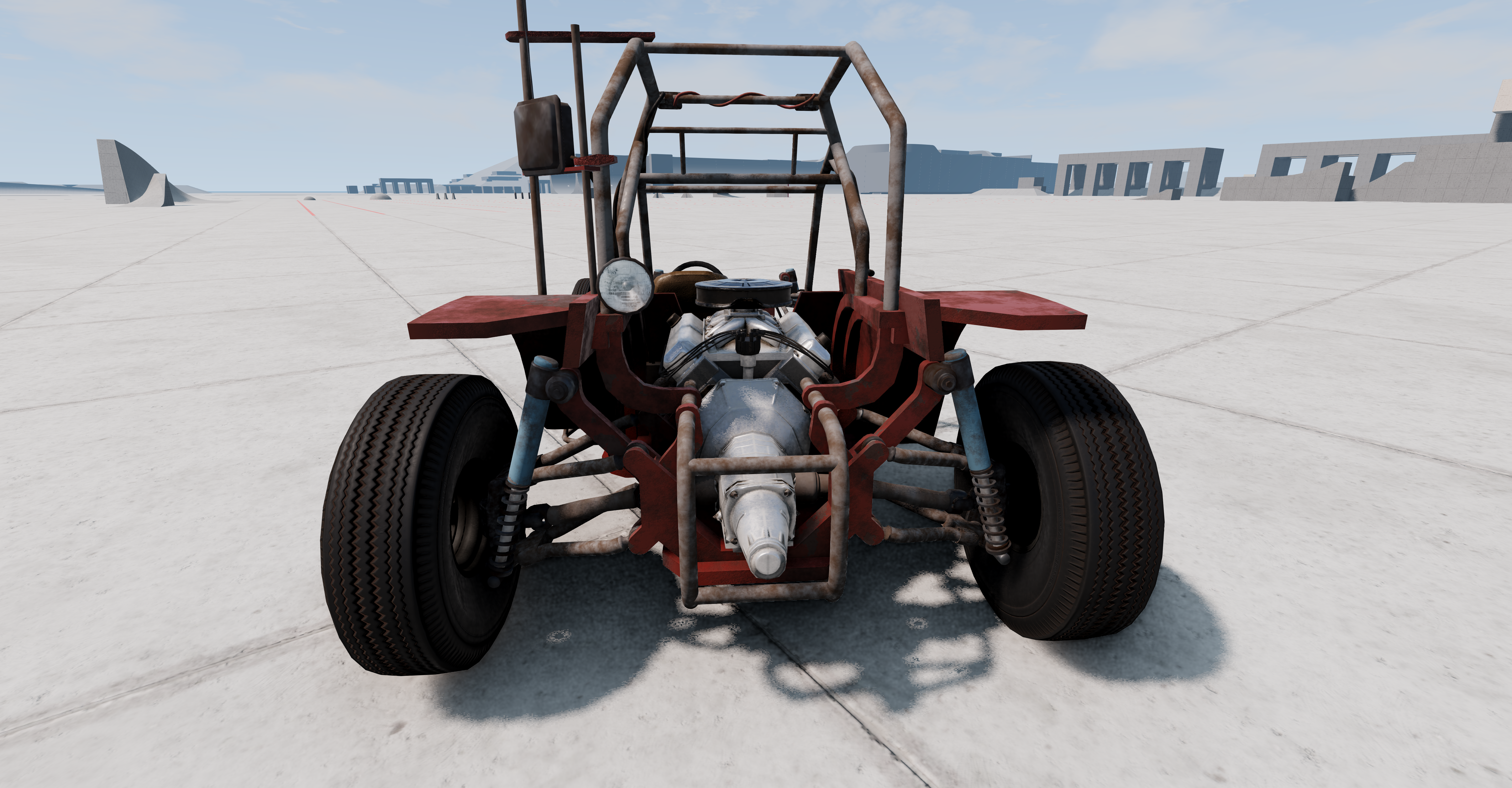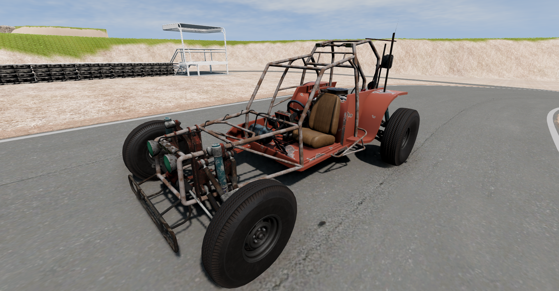 I might try it, but the only reason I was able to do this one and that I got this together so quickly is that it is essentially the backyard kart scaled up. It has a scratch-made jbeam, but it is very similar to the backyard kart in how it is shaped as well as the placement of various parts. The only real differences are the front suspension which has a two-part hub, the rollcage, and the fenders.