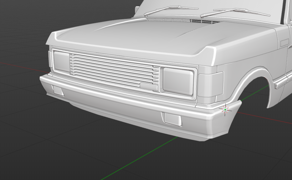 Seeing the front bumper there, I'd like to know if there will also be silver and black bumpers like on the original Range Rover. The matt silver bumpers of the real car are part of why it looks so iconic.