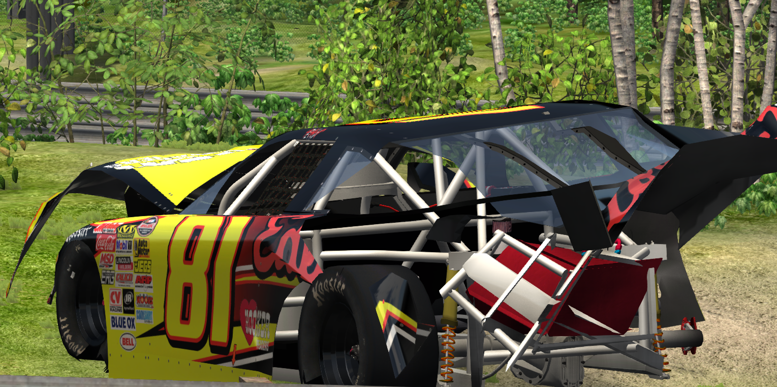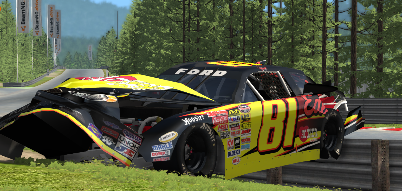 A first for beam for sure. the damage is pretty good as well as the aerodynamics (amazing model by the way, he even modeled the fuel filter and fuel lines!) A joy to throw around on HR or a short track
