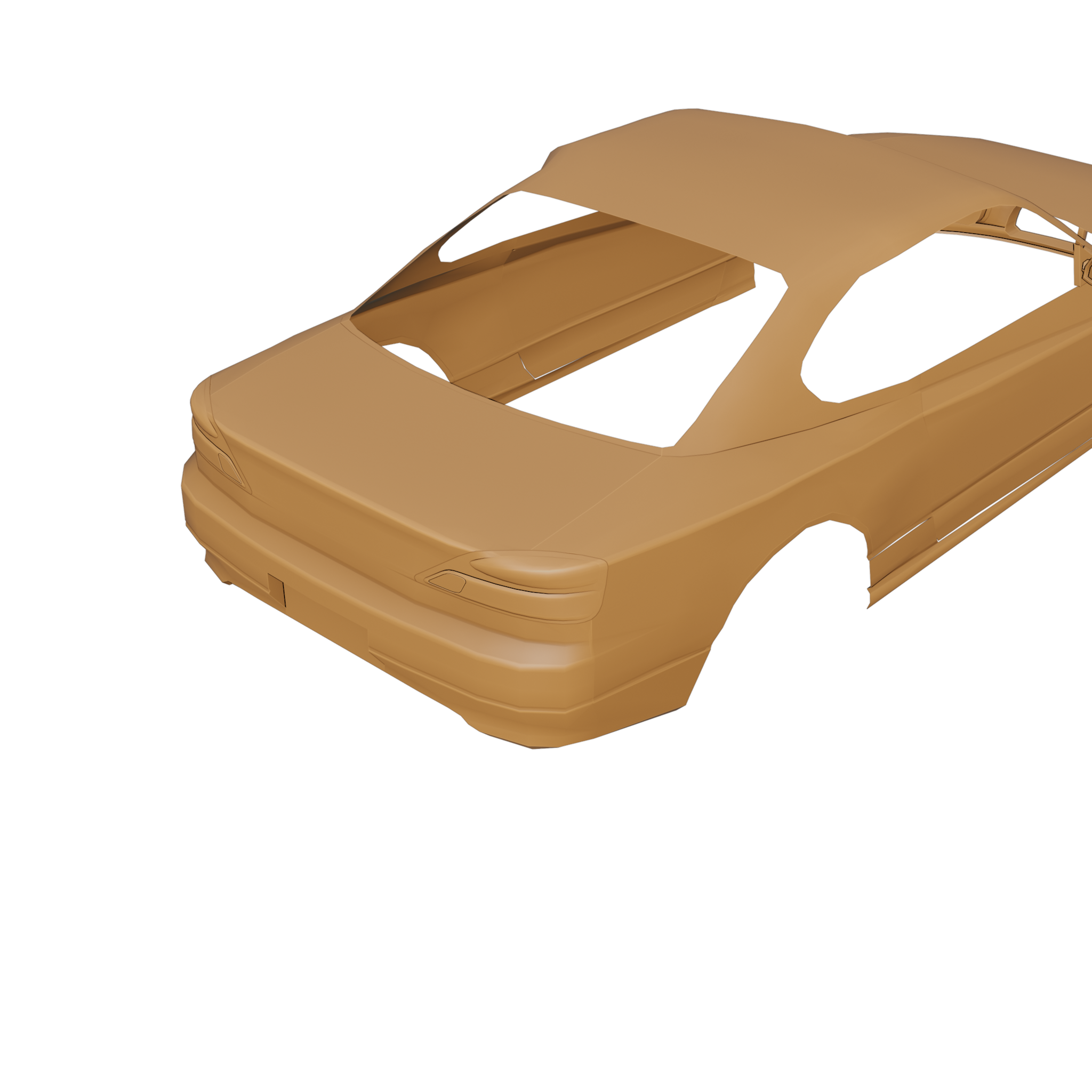 this is an interesting take, I’ll have backups of this model incase I wanna restore it but for now i’m sticking with my first plan of making a non lore-friendly silvia to avoid confliction with LJs 250bx I’ve downloaded GT models now and started adjusting the proportions of the car, the differences are big but not absolutely absurd which means i’ll be able to adjust the shell to closely match the GT models without changing topology much. The bigger problem will be making the inner unibody match the altered shell proportions without messing up textures and UVs. If i decide to go through with the process fully it will probably take a few weeks. Here's what I've done so far, I've adjusted the proportions around the rear bumper, quarter panels and boot to match the GT model (cycle through the photos to see the differences): This is an early wip so there's a sudden cut off where I haven't adjusted the mesh yet around where the rear of the sideskirt starts. The proportional adjustments where only done to the shell (because moving around solidified stuff is a pain) and will need to be done to the inner part of the unibody later. My plan is to start with the rear and slowly move towards the front until the entire shell is perfectly proportional, I'll then make sure the inner parts of the car work properly with the altered proportions. Grand turismo shell: My shell before adjustments: My shell after adjustments: Grand turismo shell (again): My shell after adjustments (angle 2):