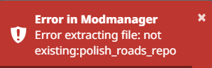 My game crashed and now the Polish Road mod works? Its so weird. --- Post updated --- still doesn't unpack